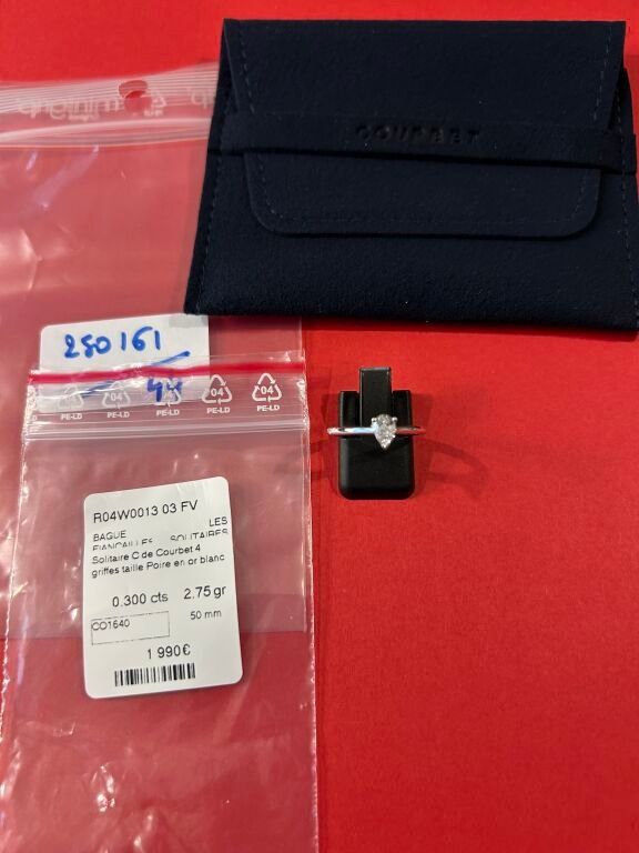 COURBET Ring in 18 carat white gold set with a pear-cut diam…
