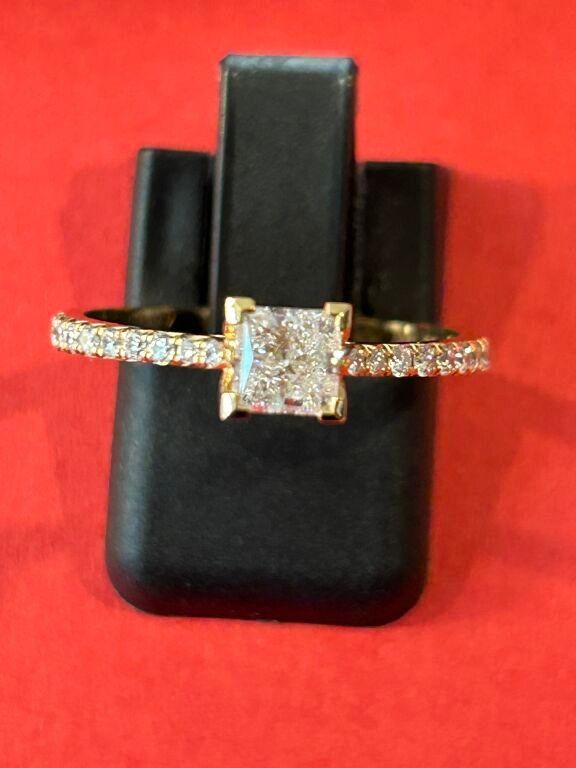 Solitaire ring in 18 carat pink gold set with a diamond on a half American wedding band (synthetic stones) weighing approximately 0.720 carats.