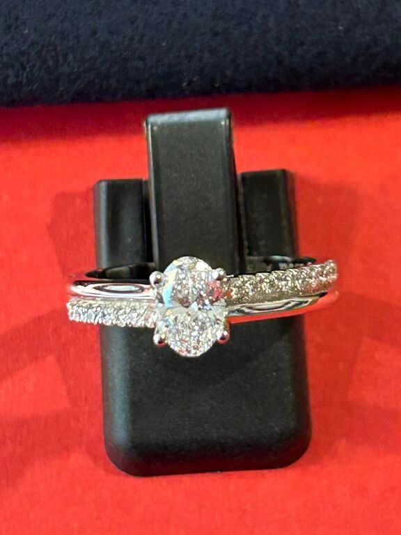 Solitaire ring in 18 carat white gold set with a diamond on a double ring alternating between a half American wedding band and a half wedding band (synthetic stones) weighing approximately 0.700 carats.
