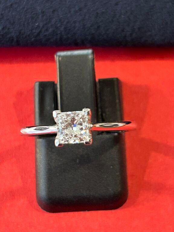 Solitaire ring in 18 carat white gold set with a diamond (synthetic stones) weighing 0.590 carats.