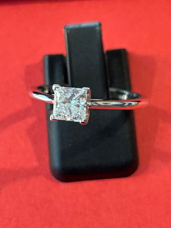 Solitaire ring in 18 carat white gold set with a diamond (synthetic stones) weighing 0.710 carats.