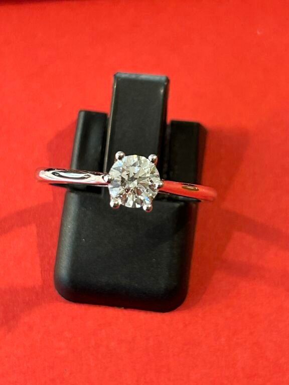 Solitaire ring in 18 carat white gold set with a diamond (synthetic stones) weighing 0.540 carats.