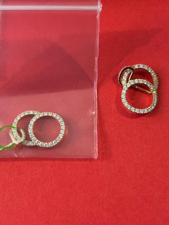 Pendant earrings in 18 carat yellow gold paved with diamonds (synthetic stones) weighing 0.700 carat. No clasp.