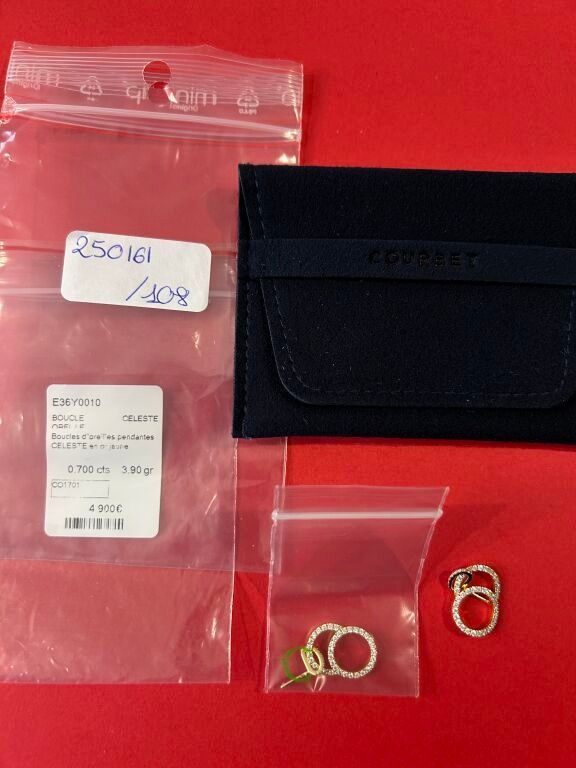 COURBET Pendant earrings in 18 carat yellow gold paved with …