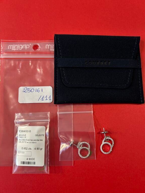 COURBET Pendant earrings in 18-carat white gold paved with d…