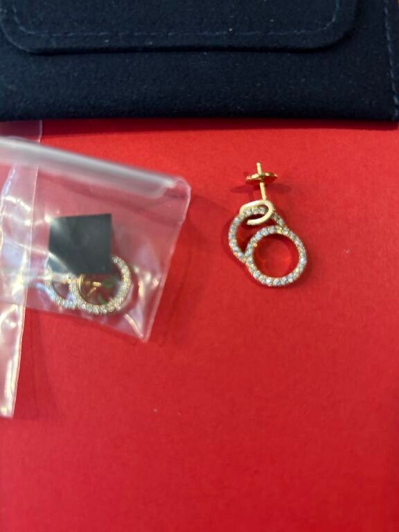 Drop earrings in 18-carat pink gold paved with diamonds (synthetic stones) weighing 0.720 carat. Alpa clasp