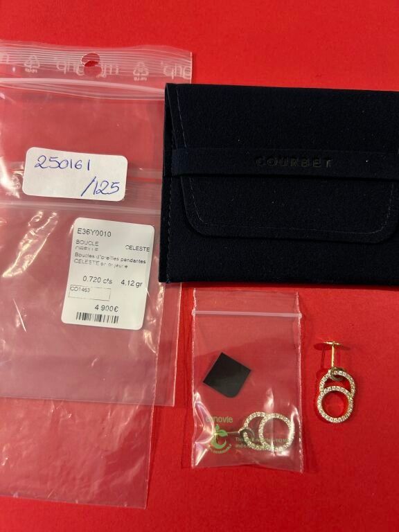 COURBET Pair of dangling earrings in 18 carat yellow gold pa…