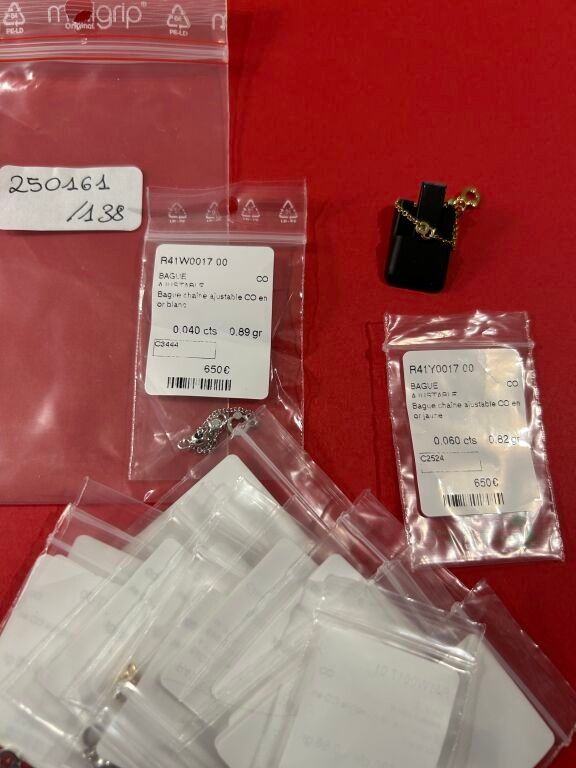 Set of 14 adjustable chain rings in 18 carat yellow, white or pink gold and small diamonds (synthetic stones).