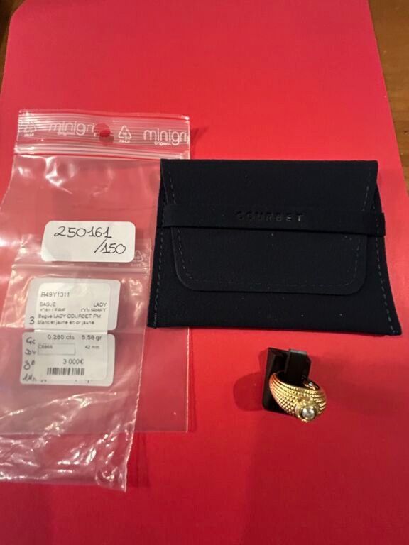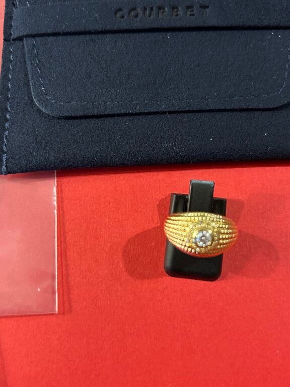COURBET Textured dome ring in 18 carat yellow gold set with …