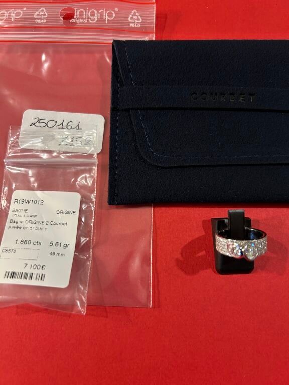 COURBET Ring in 18 carat white gold paved and set with 2 dia…