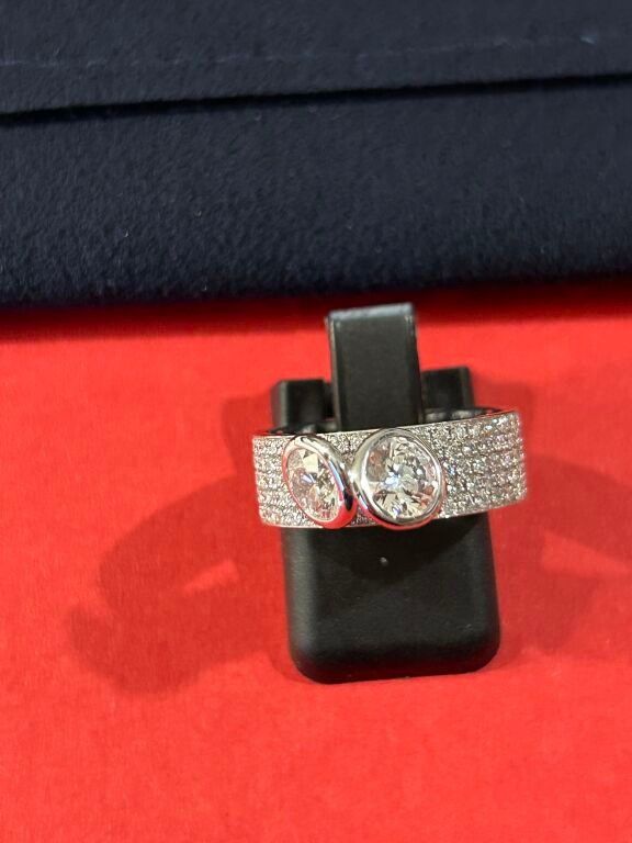 Ring in 18 carat white gold paved and set with 2 diamonds (synthetic stones) weighing 1.860 carats.