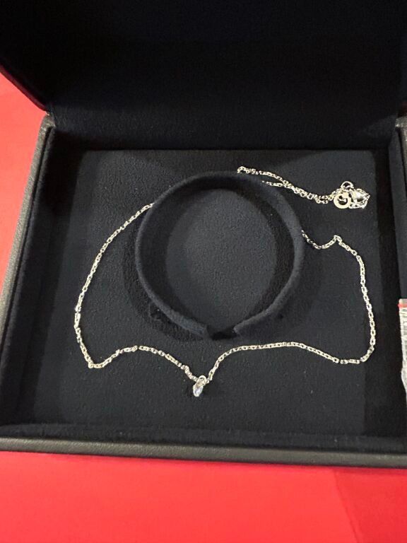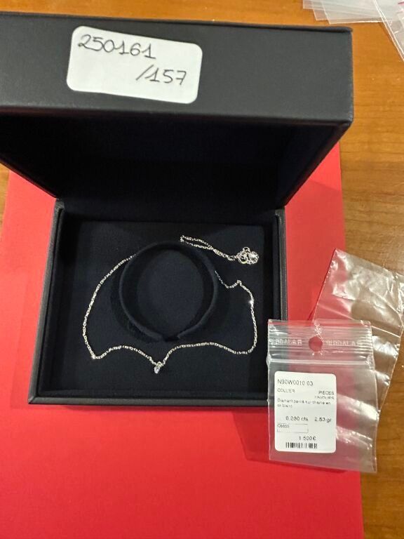 Pendant in 18 carat white gold holding a diamond (synthetic stone) weighing 0.280 carats in its case