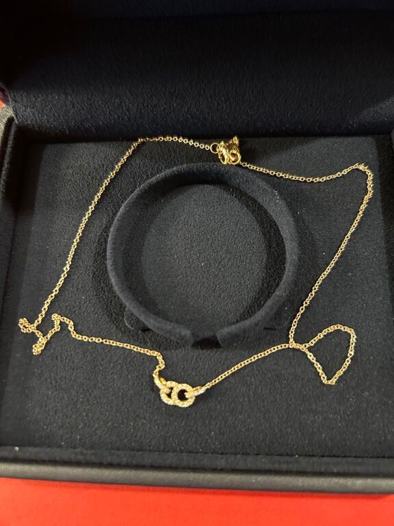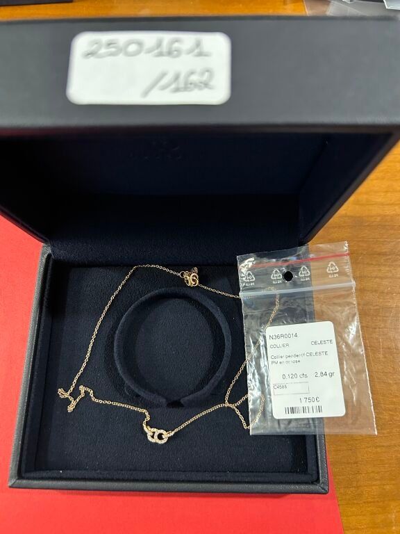 18 carat pink gold chain holding a diamond-paved design (synthetic stone) weighing 0.120 carats in its case