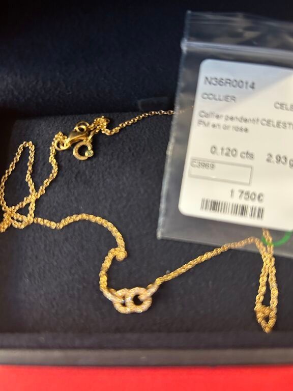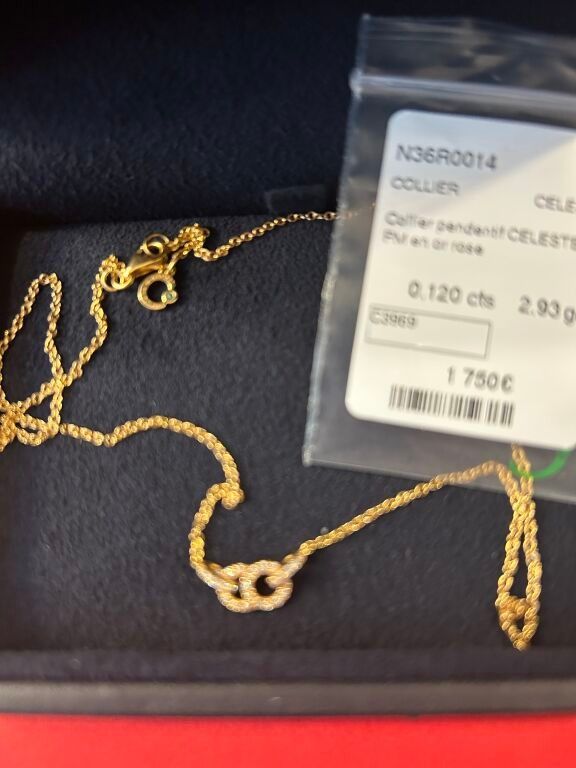 Pendant in 18 carat pink gold holding a diamond-paved design (synthetic stone) weighing 0.120 carats in its case