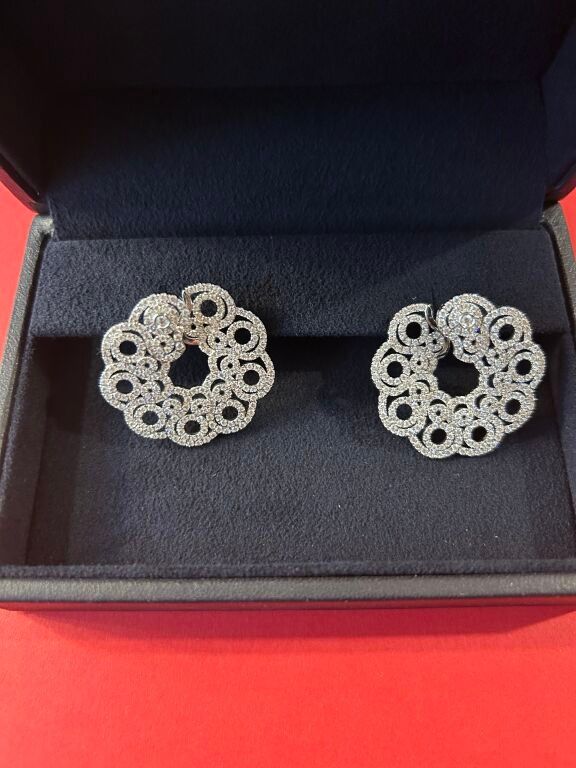 COURBET Pair of earrings in 18 carat white gold with a decor…