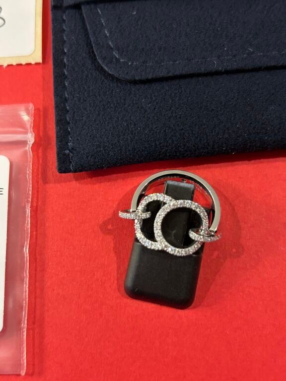 Ring in 18-carat white gold with a diamond-paved motif (0.390 carats - synthetic stones) attached by rings to a flat half-ring.