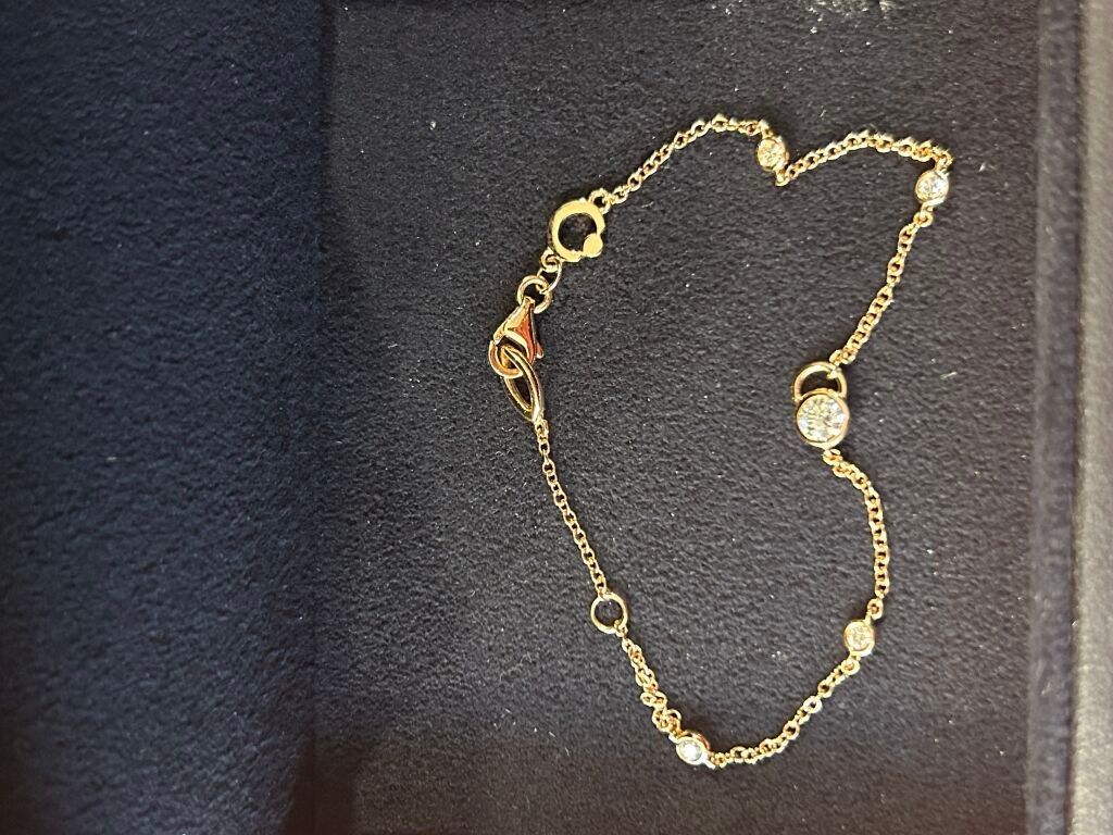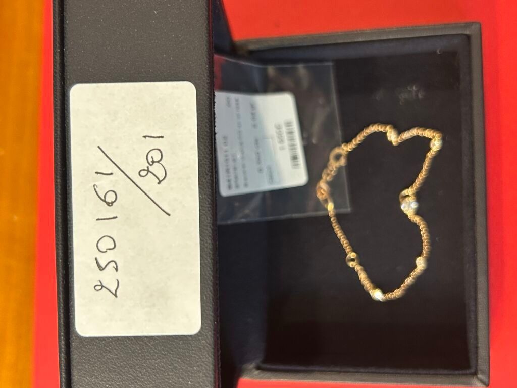 18 carat pink gold chain bracelet set with 5 small diamonds (total weight 0.32 carats) (synthetic stones) in a jewellery box