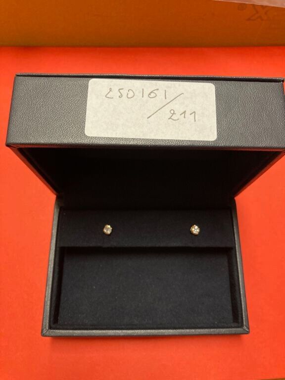 Pair of stud earrings in white gold and diamonds (total 1.48 carats) (synthetic stones) in a case