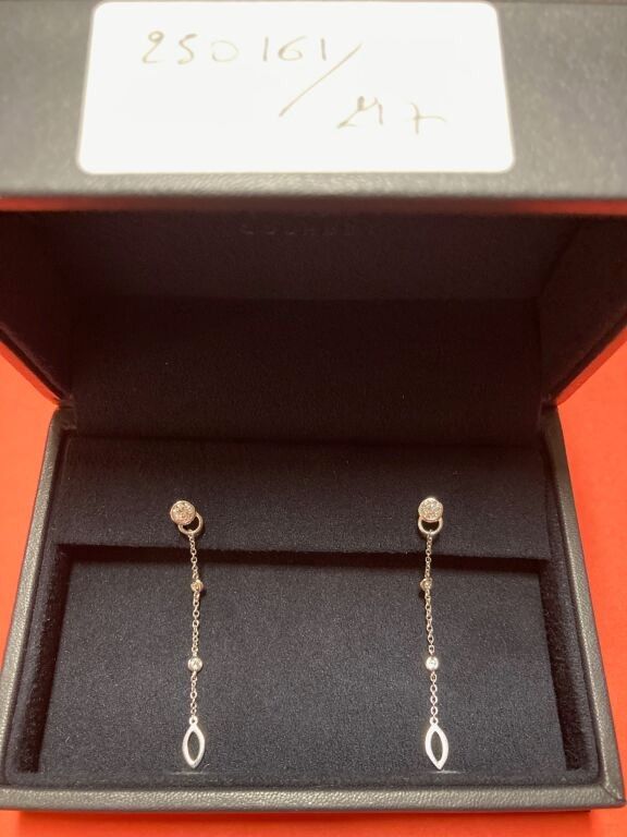 Pair of earrings in 18 carat white gold and 3 diamonds (0.55 carats) (synthetic stones) in a jewellery box