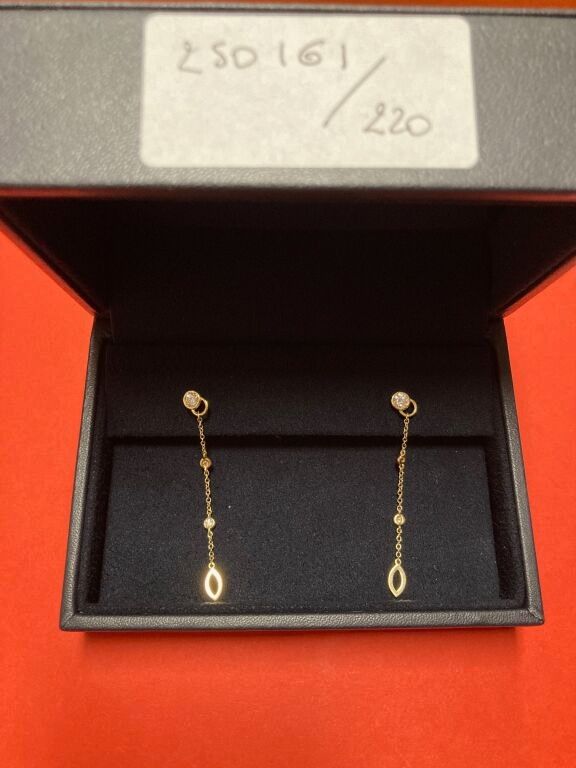 Pair of earrings in 18 carat yellow gold and 3 diamonds (0.56 carats) (synthetic stones) in a case