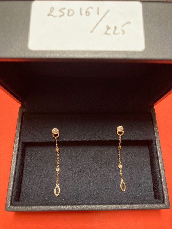 Pair of earrings in 18 carat yellow gold and 3 diamonds (0.52 carats) (synthetic stones) in a case