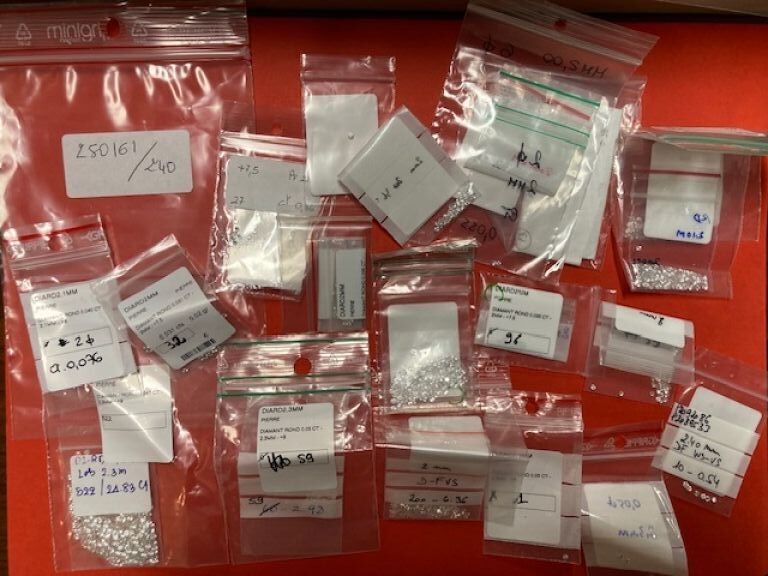 approximately 1400 diamonds from 0.03 to 0.05 carats