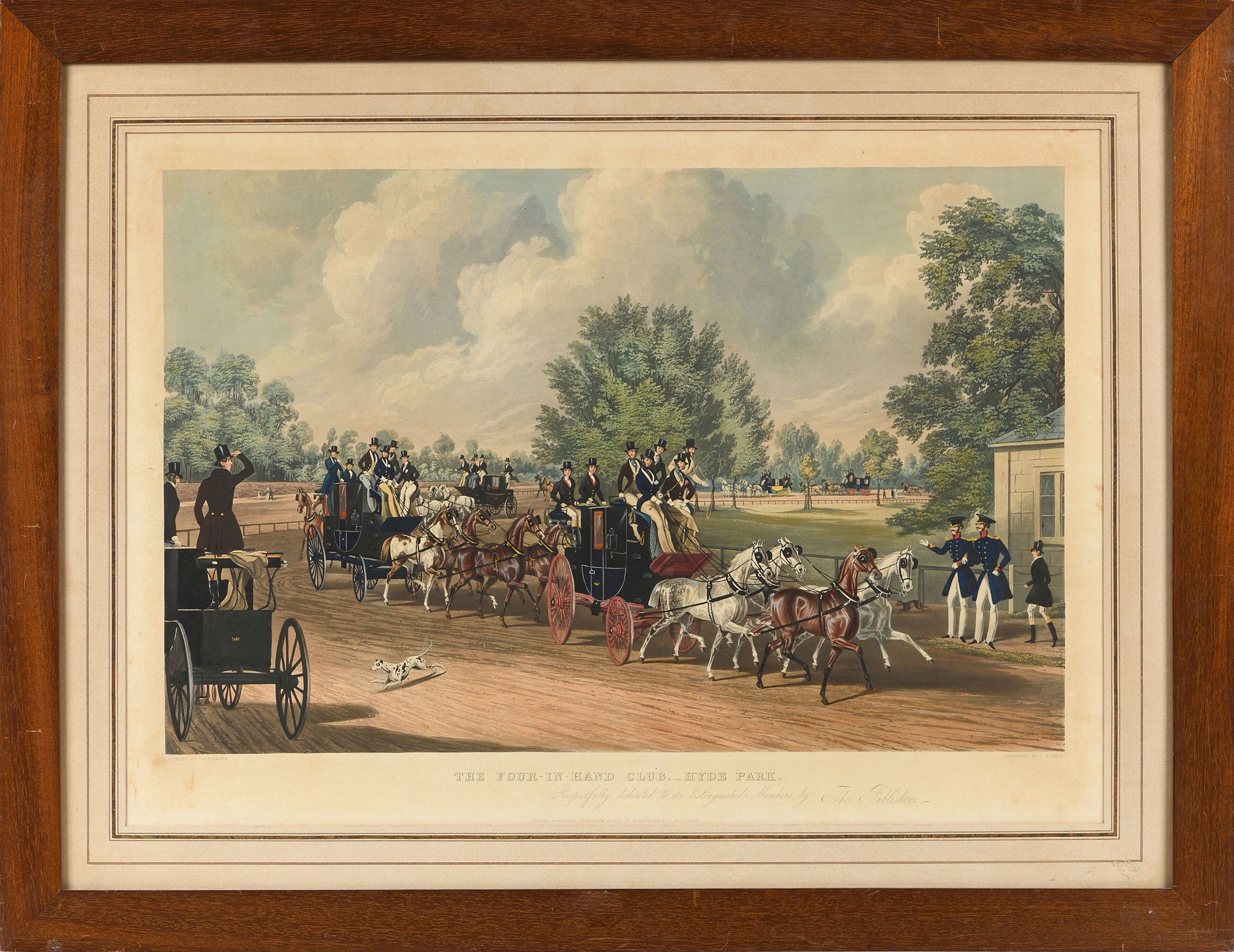 After POLLARD, engraved by Harris The Four-in-hand Club Hyde Park Aquatint with coloured highlights. 35 x 54.5 cm