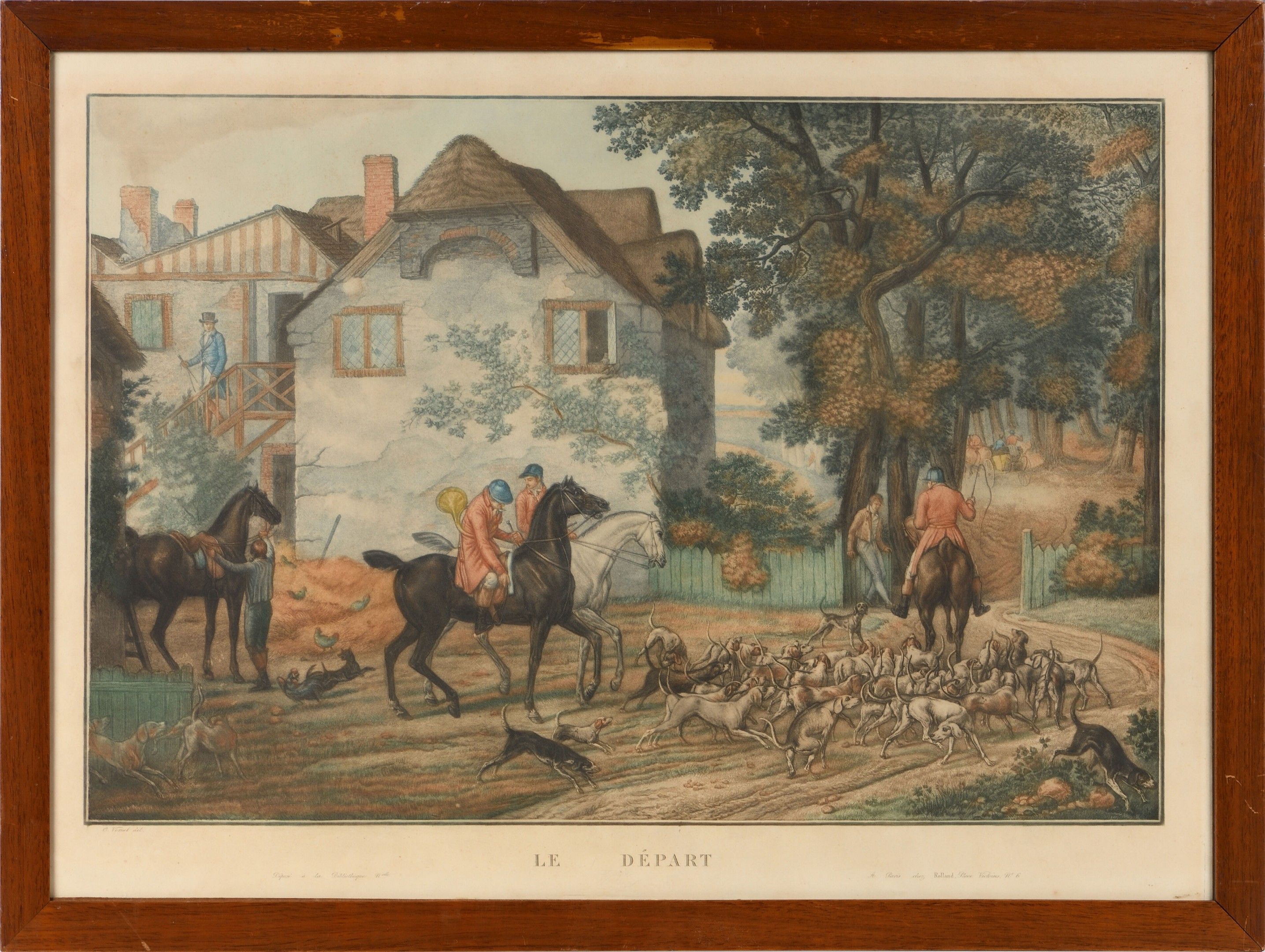 Set of three aquatints: Le départ, after Vernet - Les course…