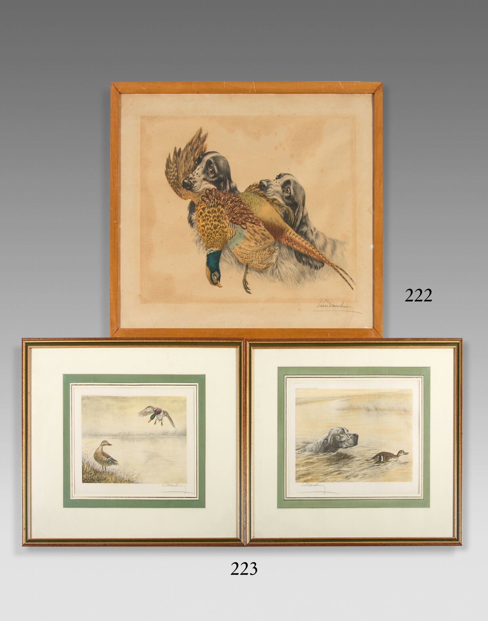 Léon DANCHIN Braque and a Couple of Ducks in a Pond - Braque…