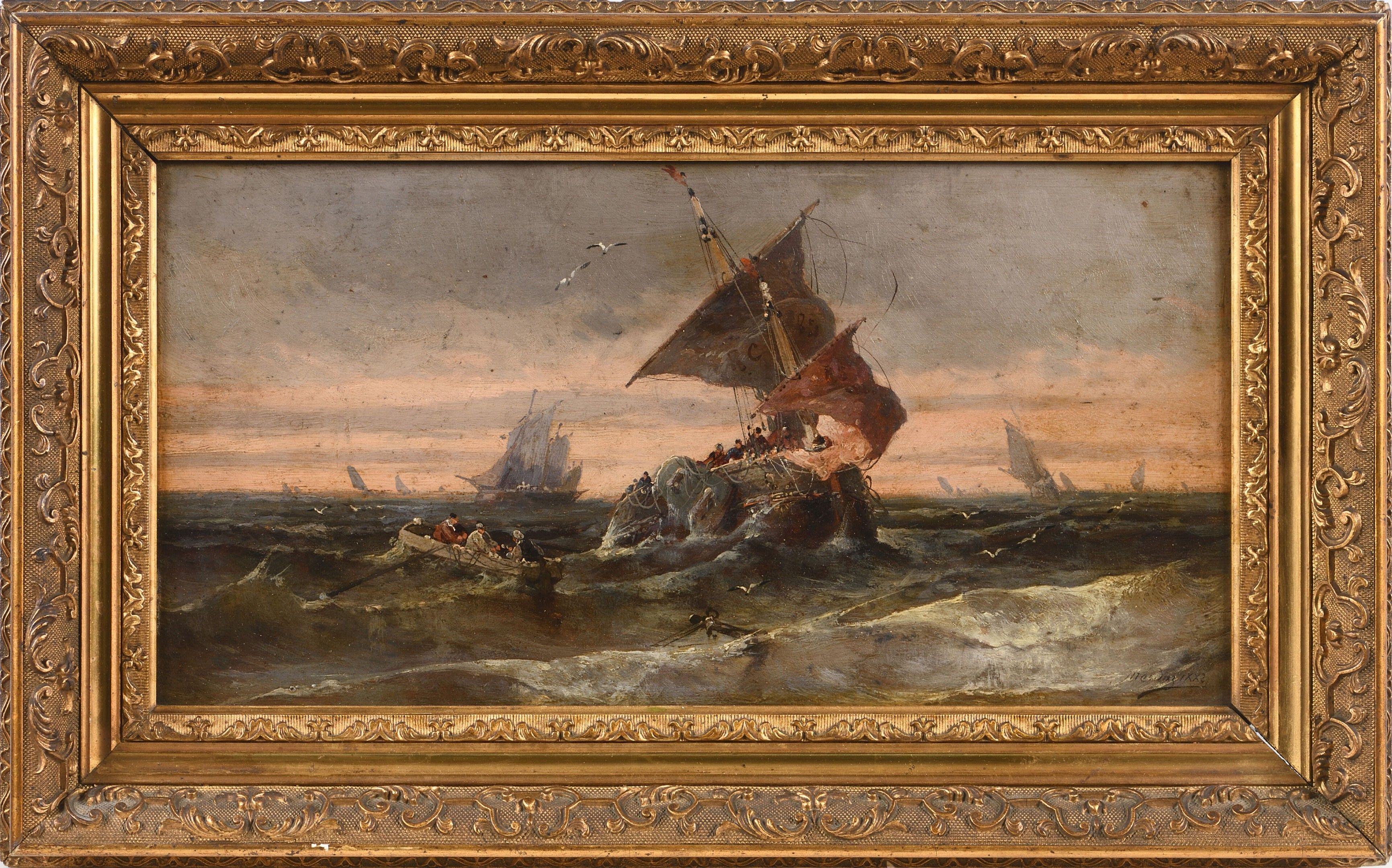 Oil on panel signed lower right and dated. 22 x 42 cm