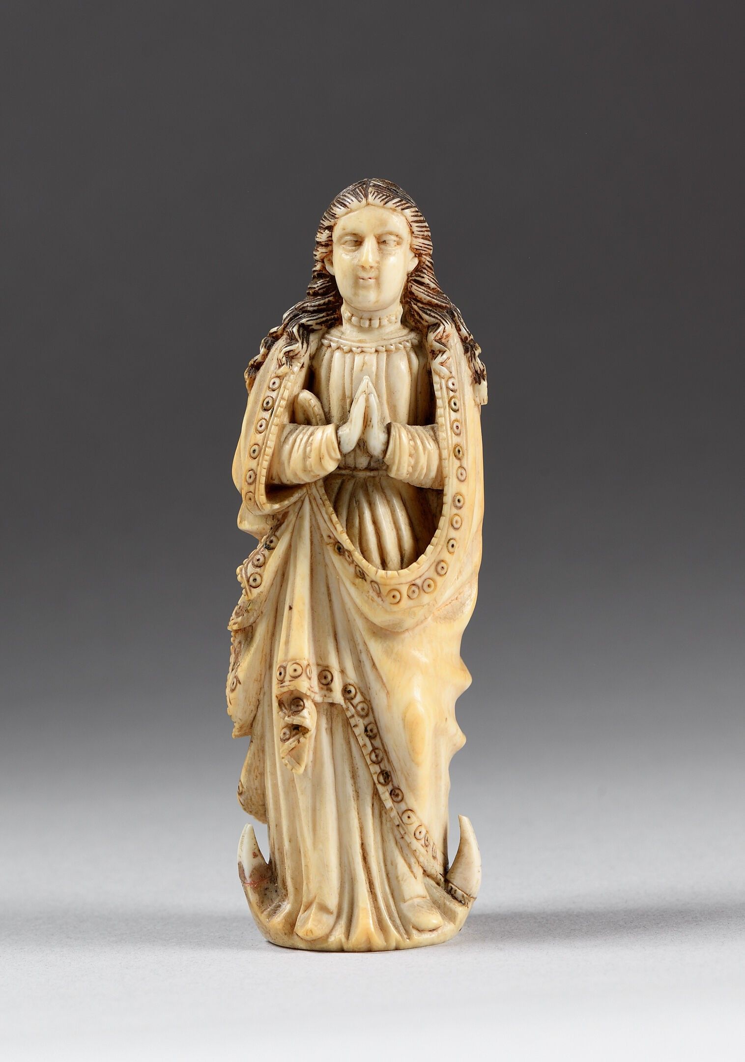 Virgin in prayer in carved ivory (Elephantidae spp).