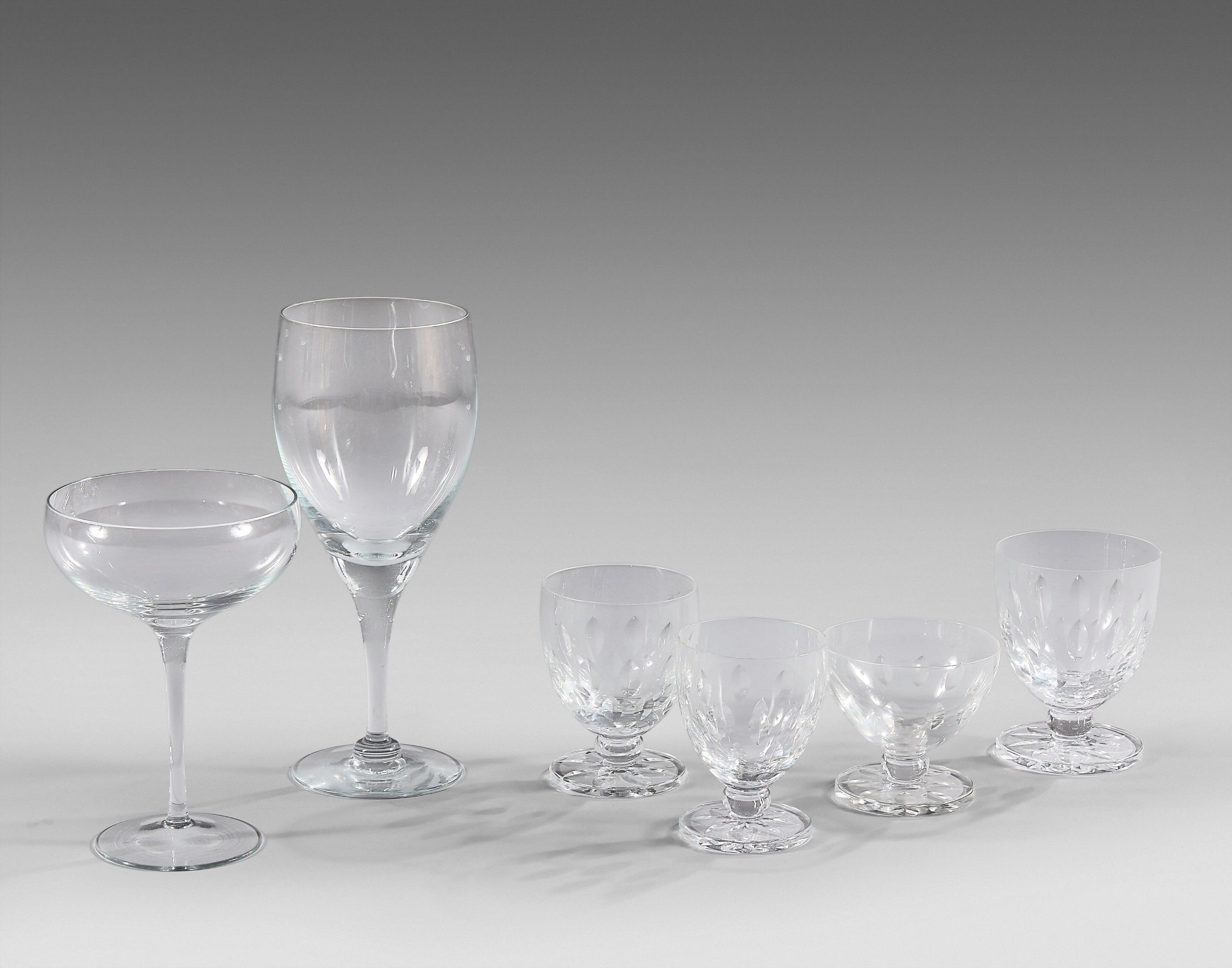 LALIQUE, France Set of crystal stemmed glasses, "Bocage" mod…