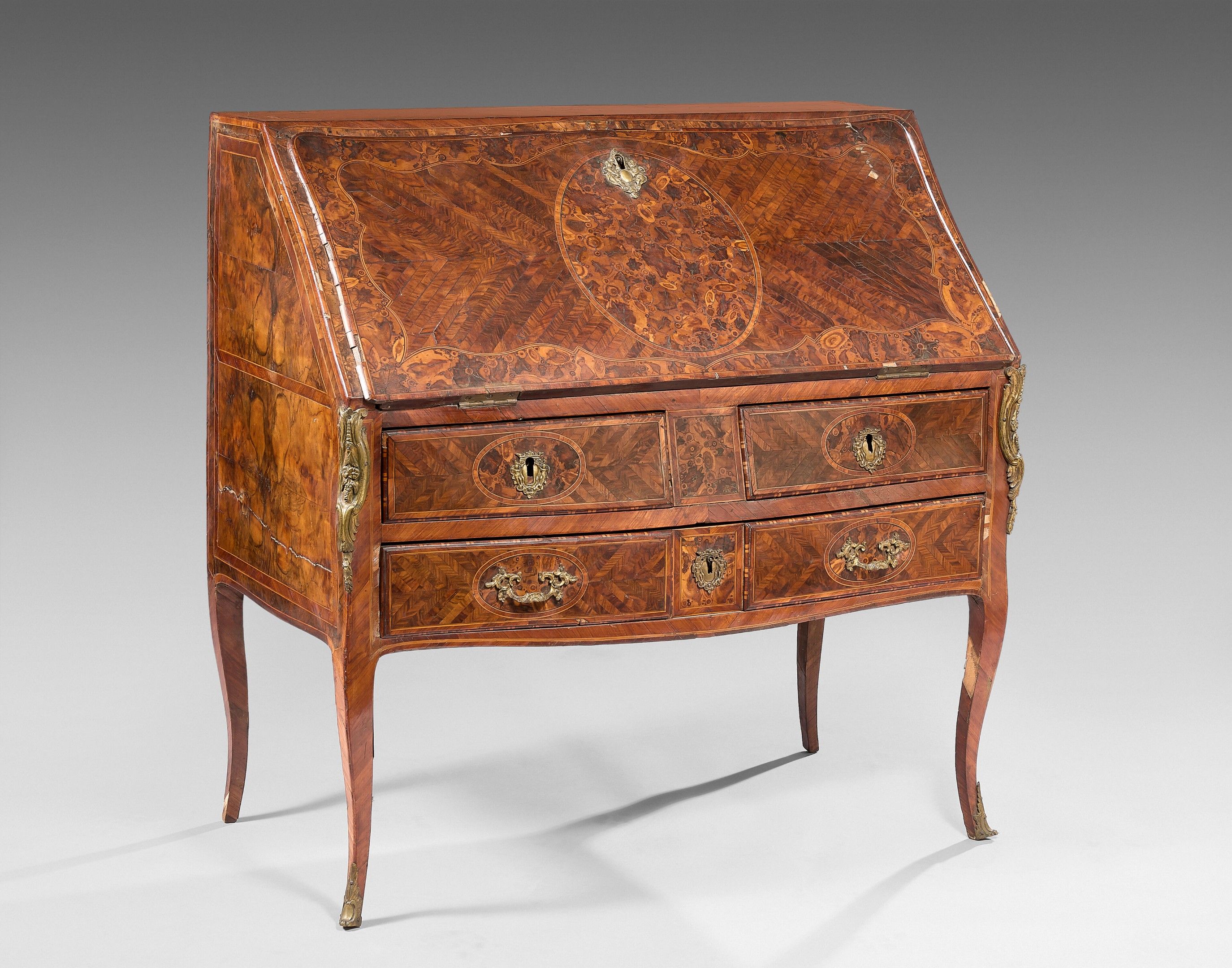 Sloping desk in fruitwood and end-wood veneer opening to a f…