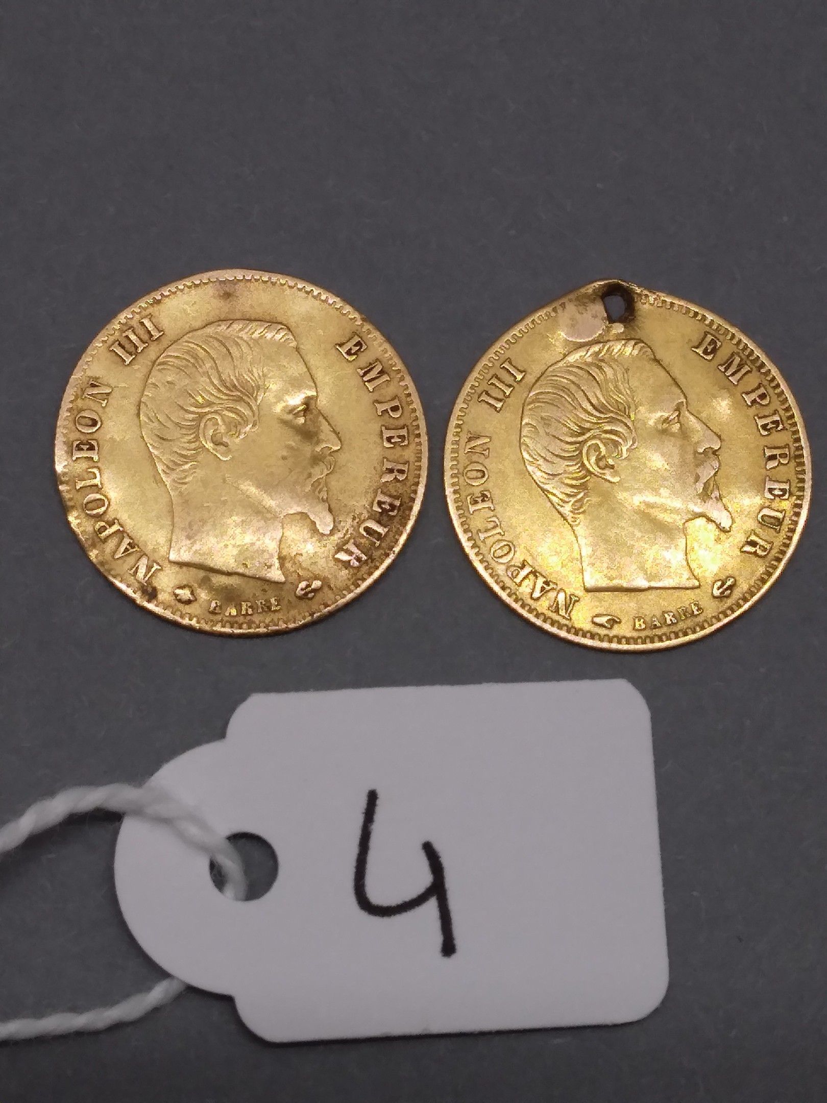 2 Coins 5 Francs Or 1858, 1860 BB 3,20 g damaged