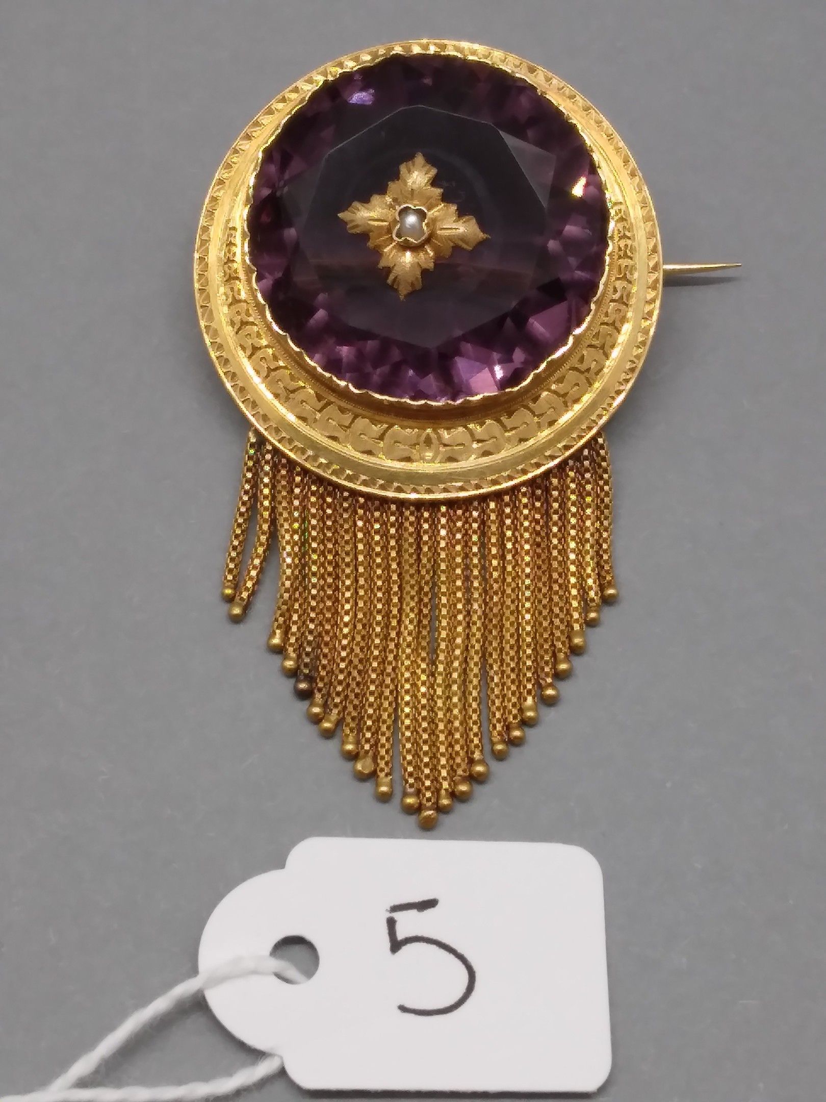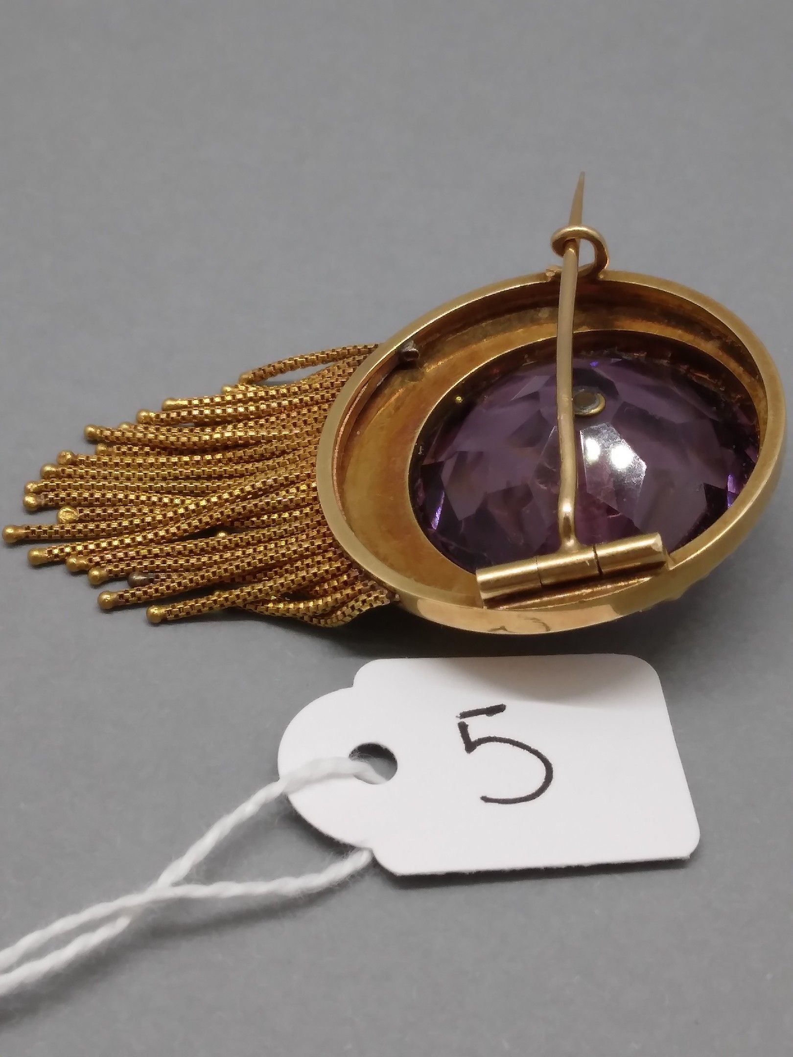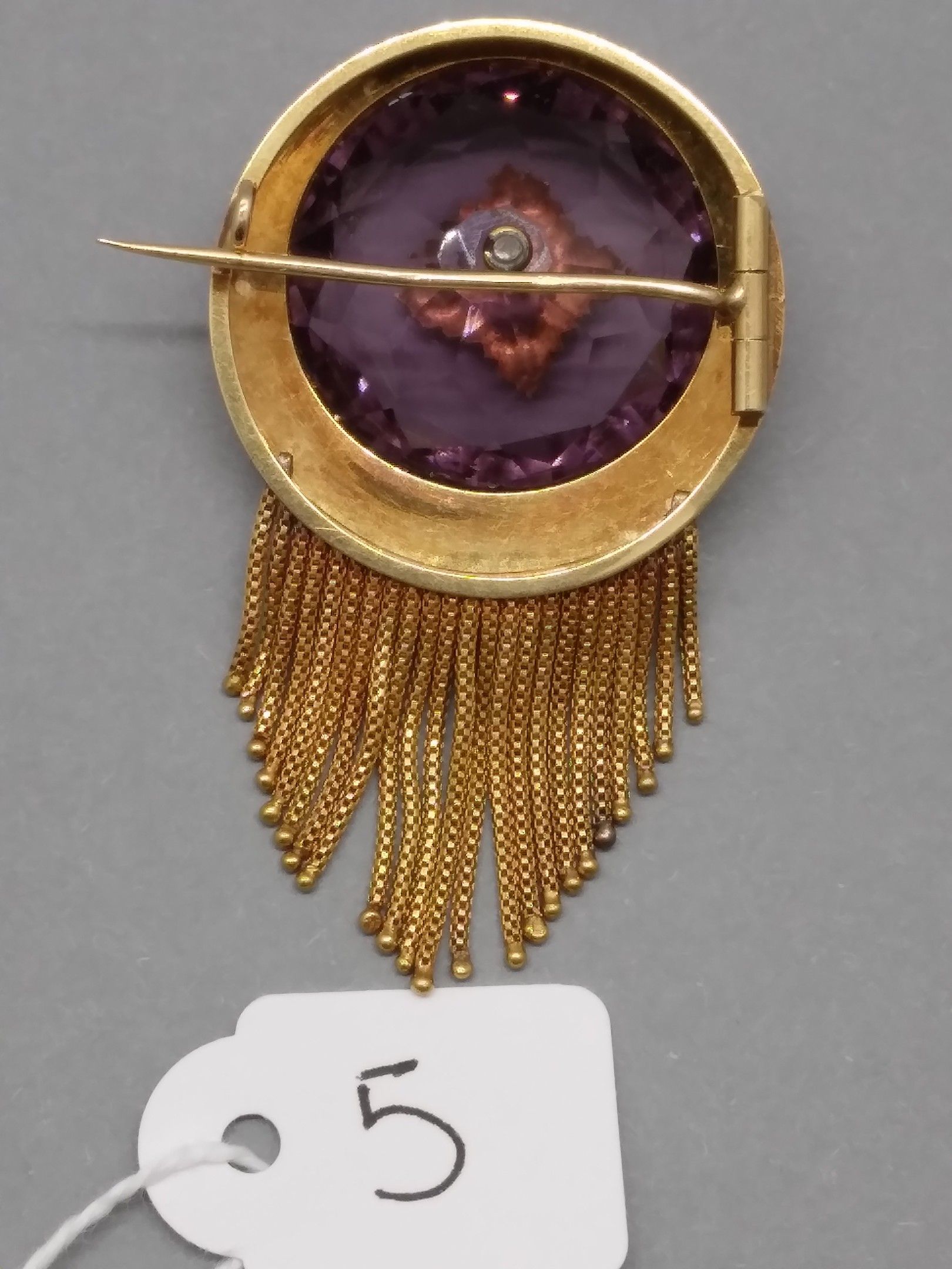 1 Brooch 750/1000 gold and violet stone 13.50 g H 5 cm