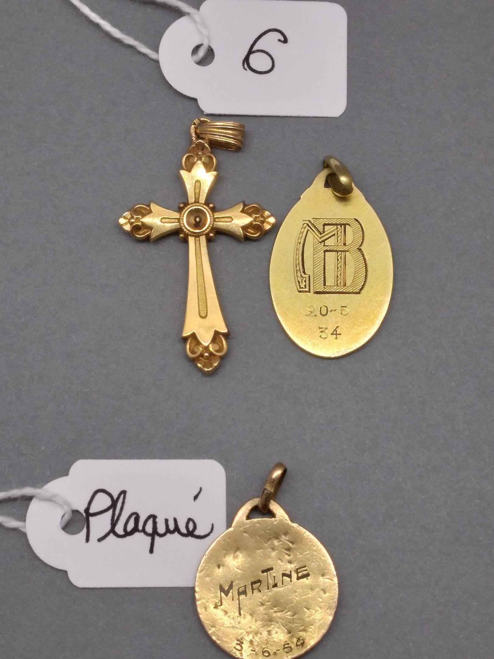 2 pendants 750/1000 gold 3.5 g and 1 gold-plated medal 1.
