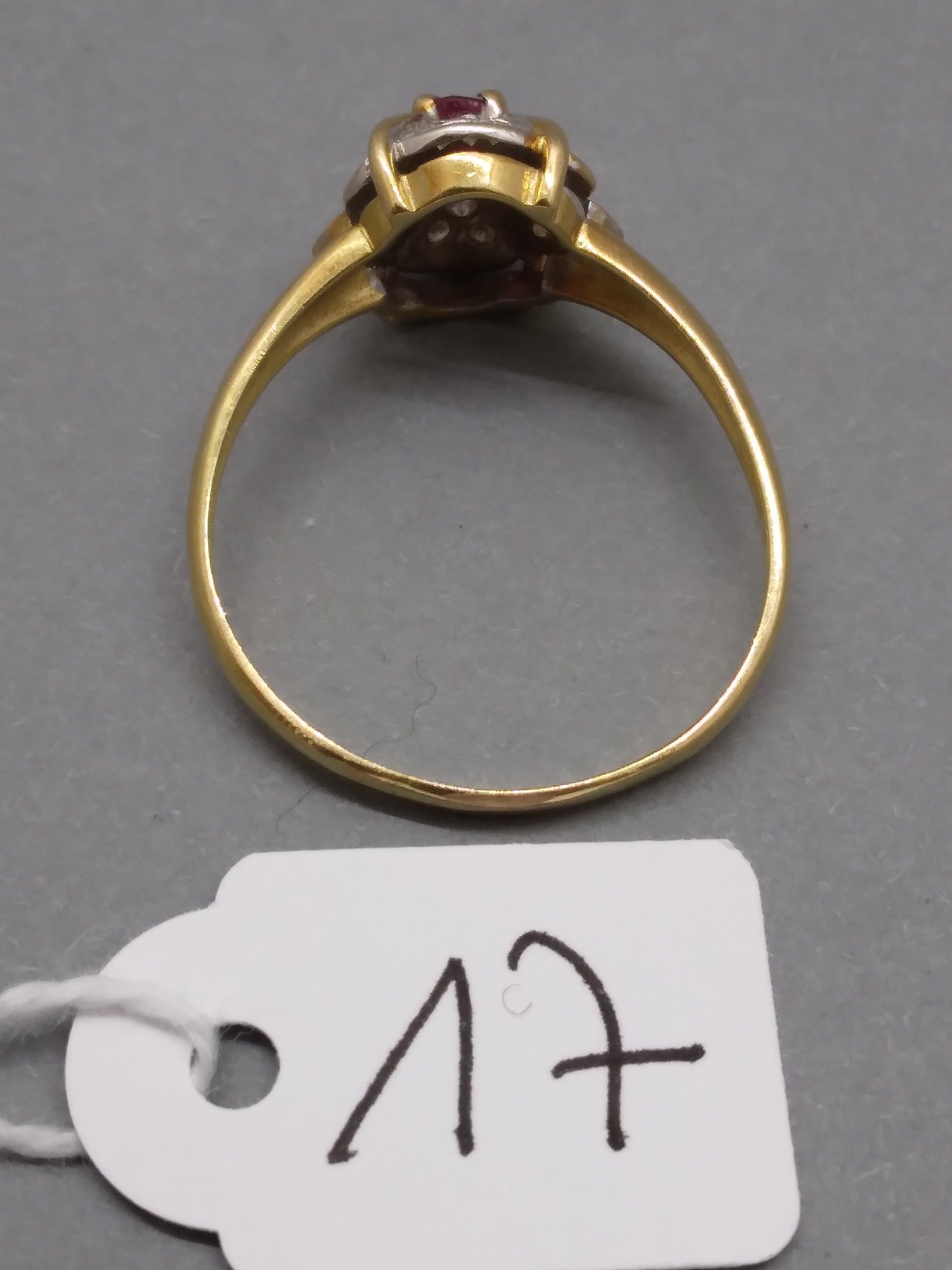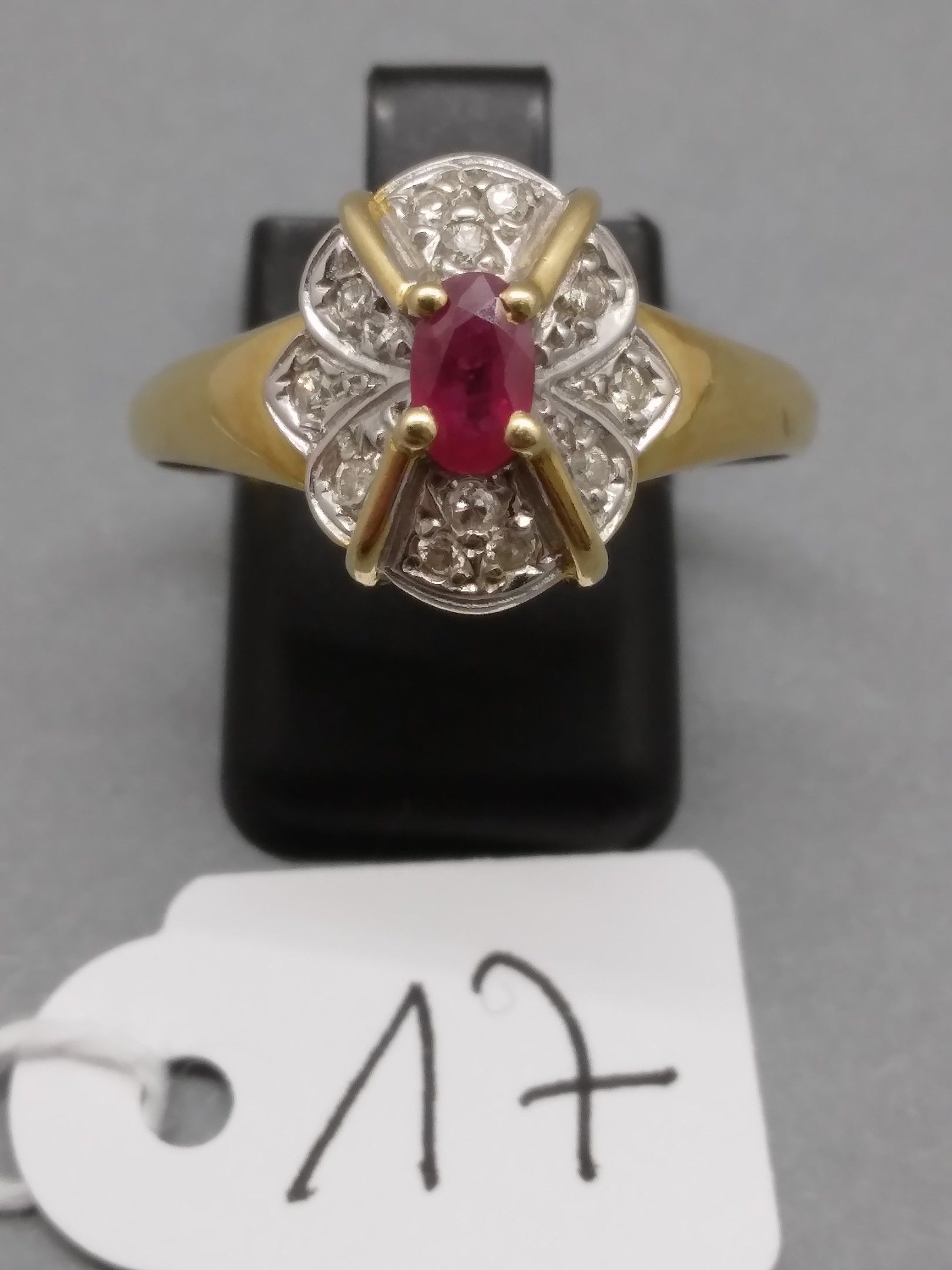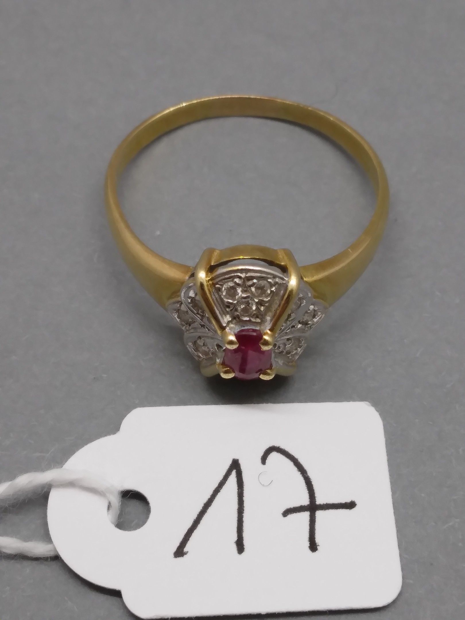 1 Ring 750/1000 gold set with a red central stone and small diamonds 3.40 g tdd 62