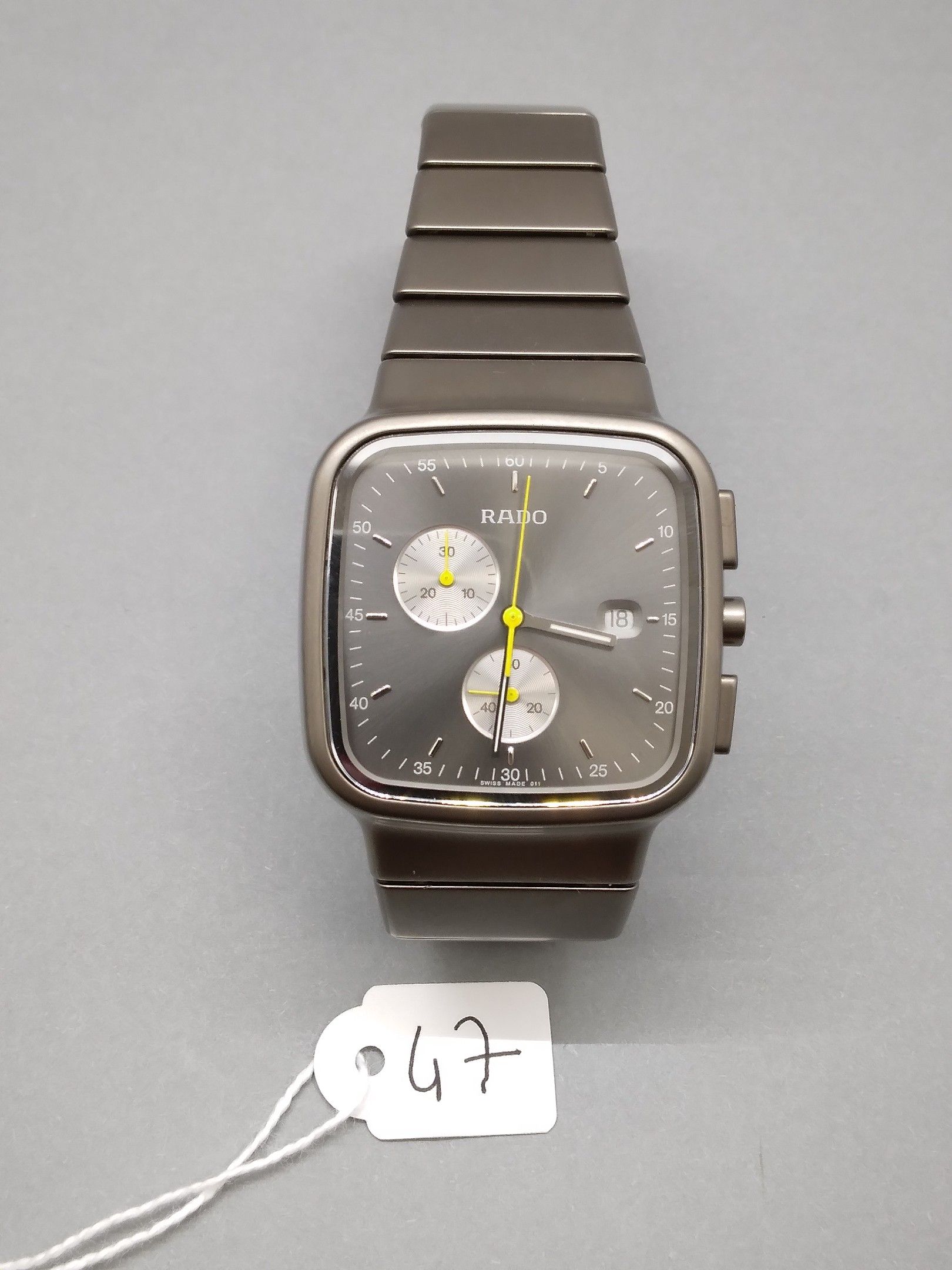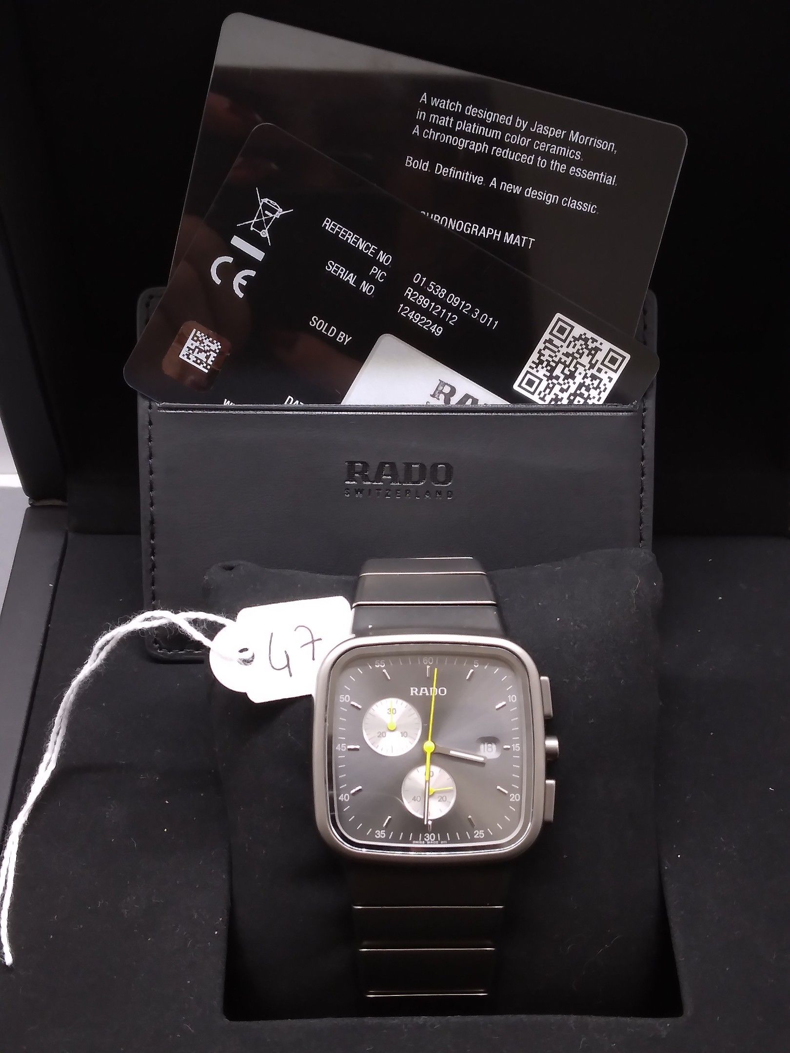 1 RADO Diastar R5.5 watch, quartz, chronograph, ref 01.538.0912.3.011, ceramic bracelet and case, folding clasp, 35 mm case, with box, surboîte and papers, very good condition, very little worn