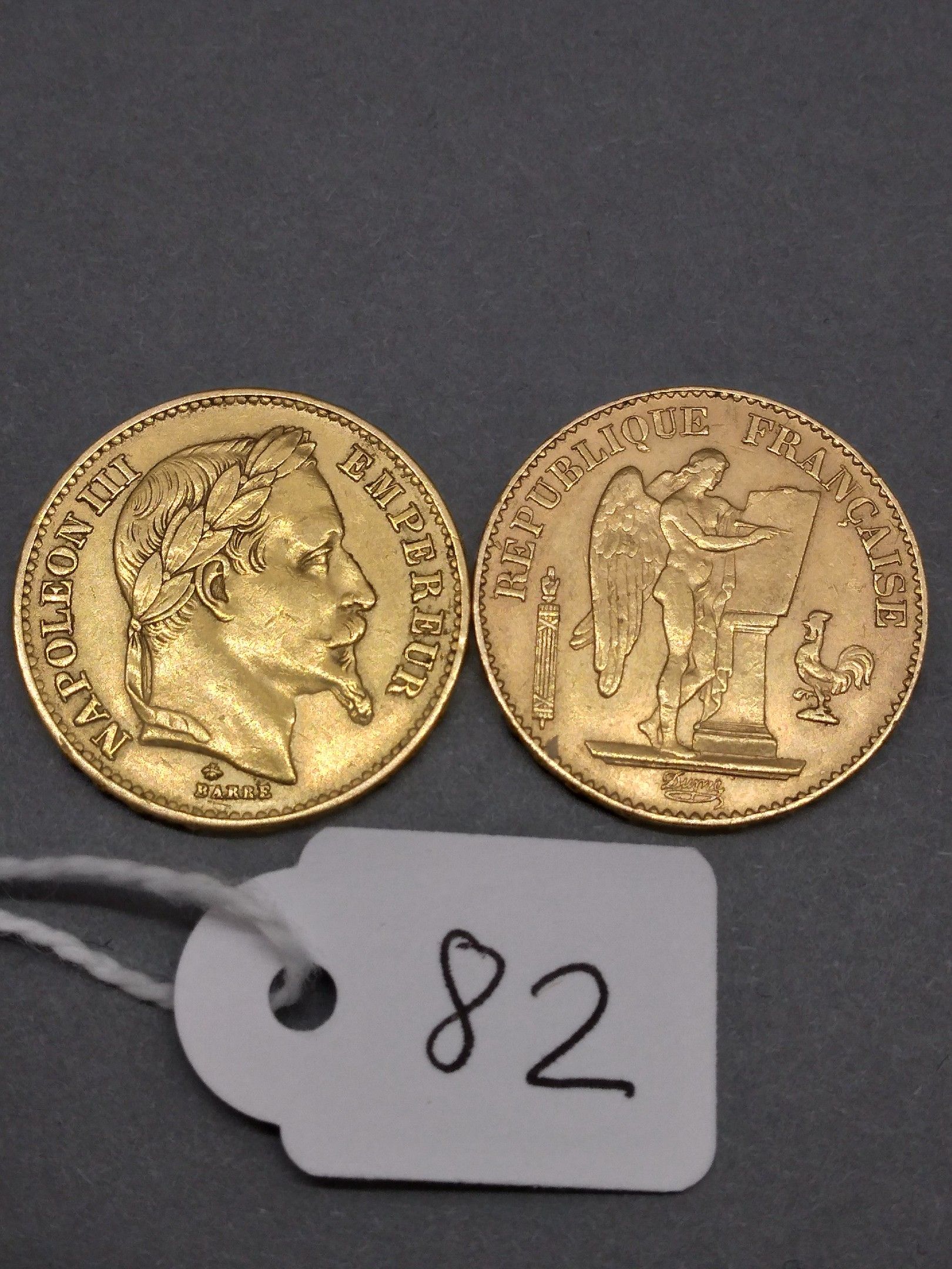 2 Coins of 20 Francs Or 1869 A, 1897 A 12.9 g