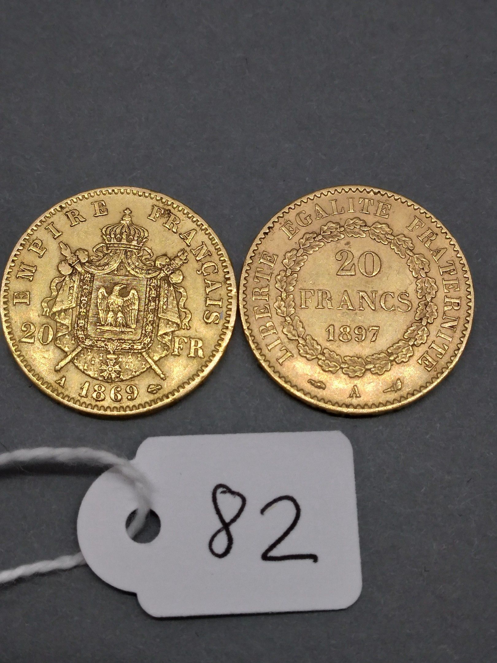 2 Coins of 20 Francs Or 1869 A, 1897 A 12.
