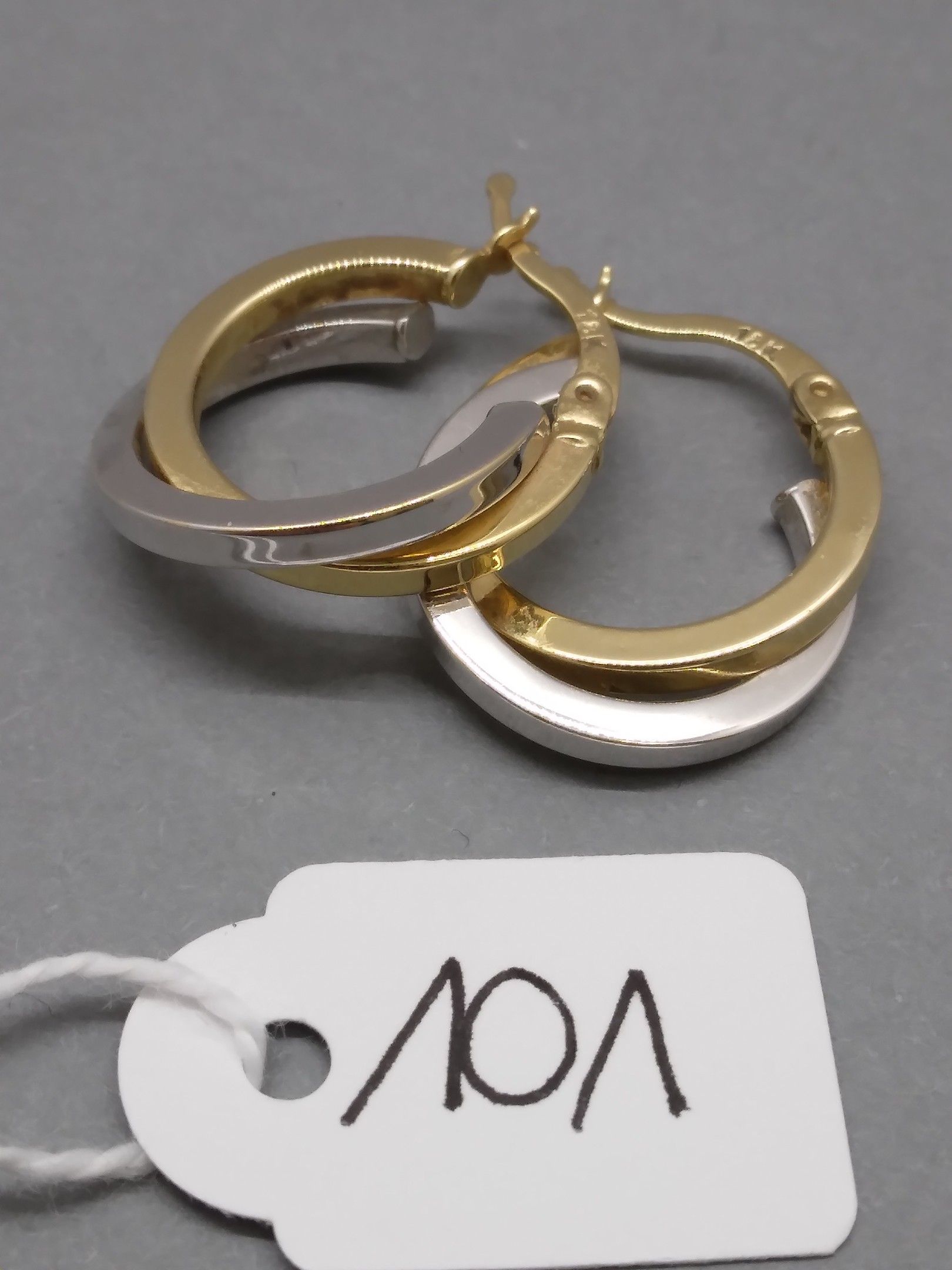 Pair of earrings 2-tone gold 750/1000 3.00 g diameter 2 cm