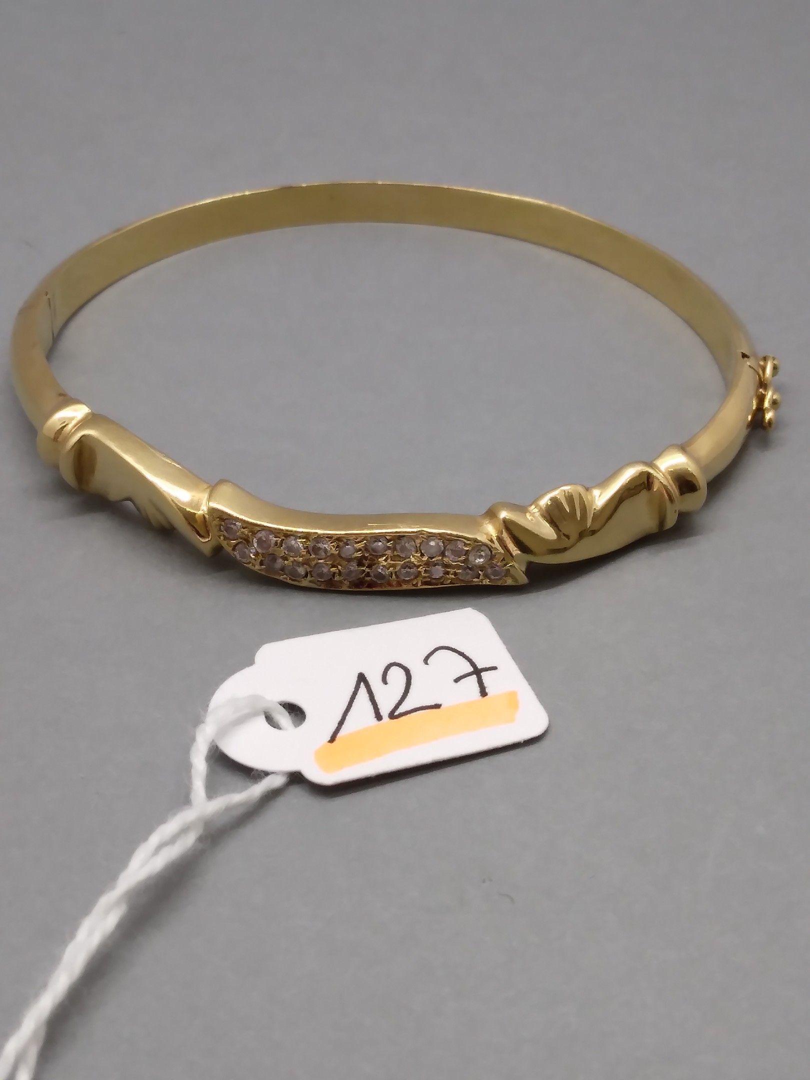1 Semi-rigid bracelet 750/1000 gold and white stones 11.00 g diameter 5.5 cm (ac)