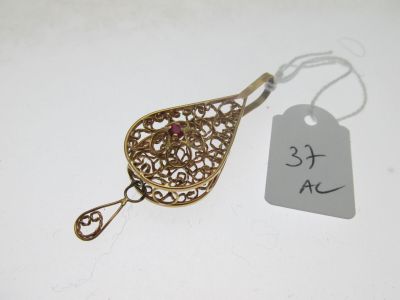 1 pear-shaped pendant set in filigree pink gold set with a s…