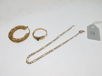 1 creole 1 ring set with a stone, cut ring 1 bracelet with a…
