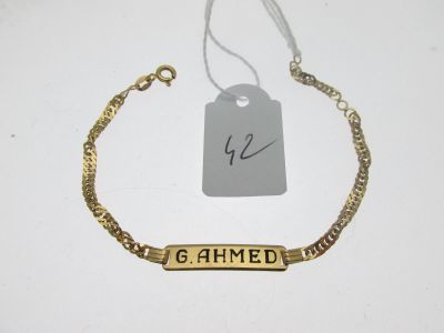 1 child's identity bracelet in singapore mesh, gold, engrave…