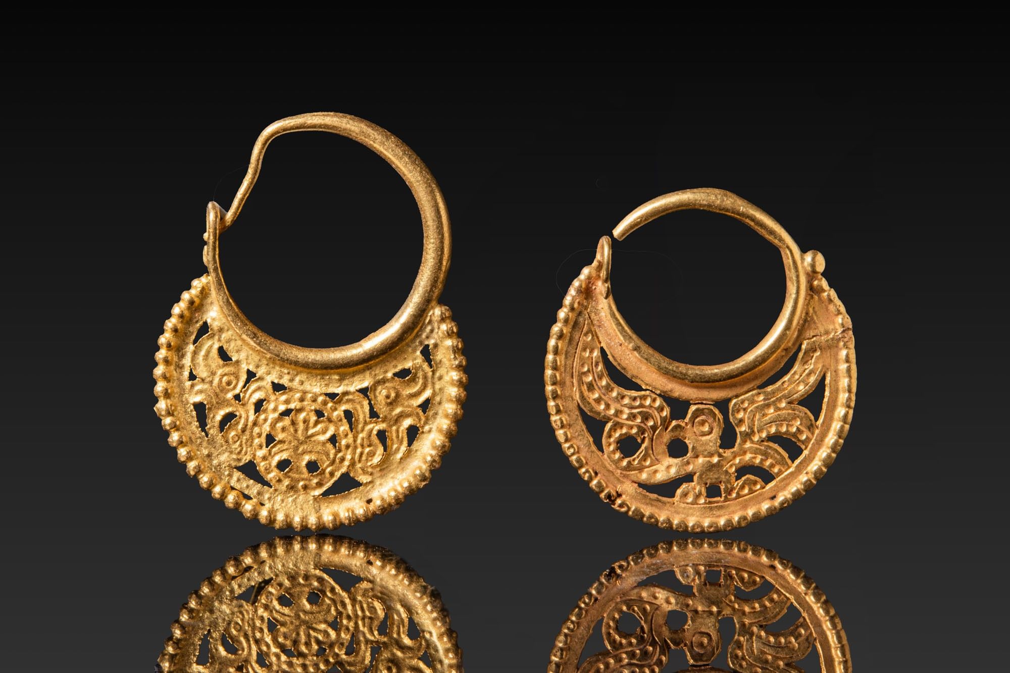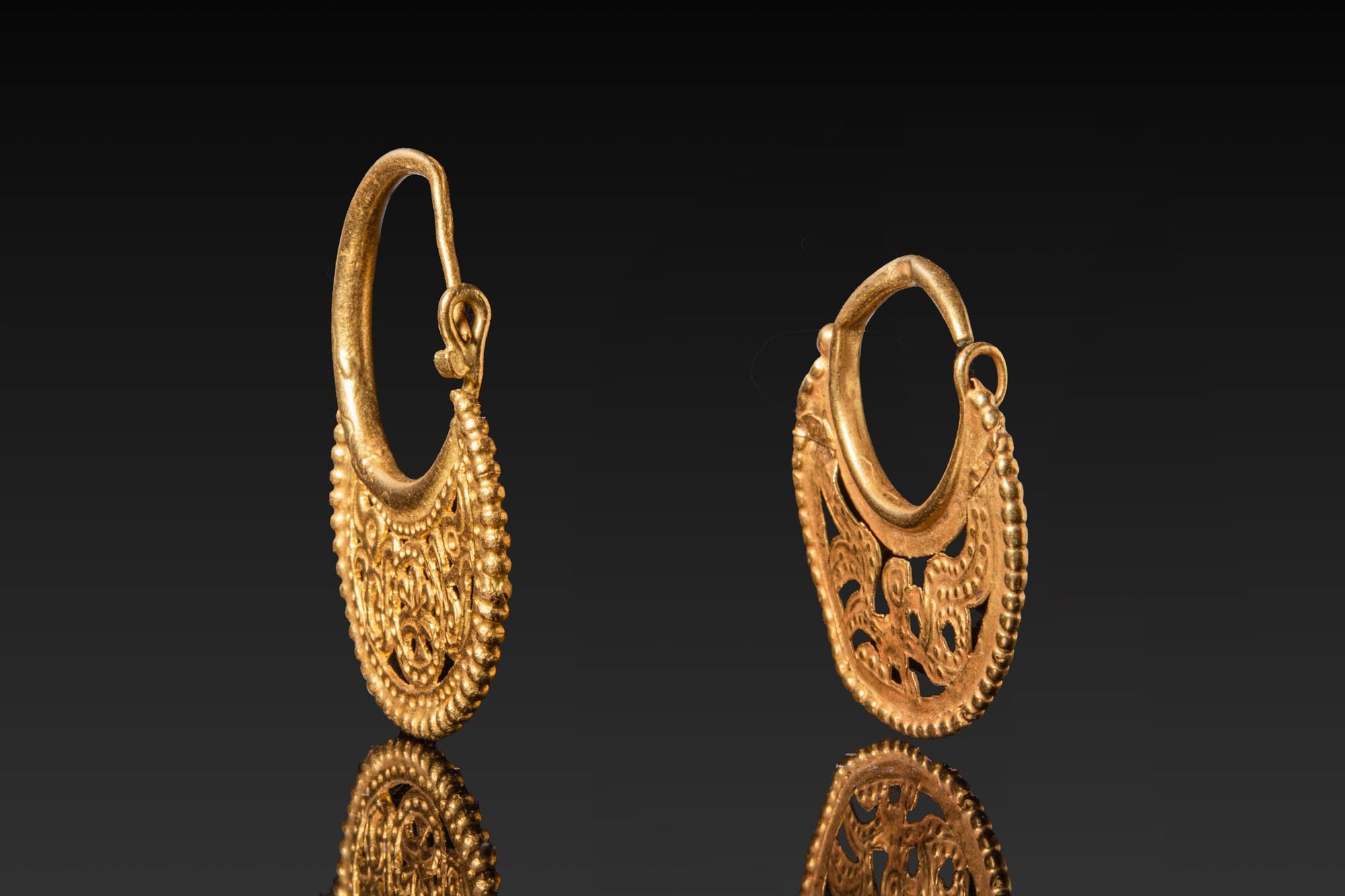 Premium PAIR OF BYZANTINE GOLD EARRINGS WITH BIRDS. Ca. AD 500 - 600…