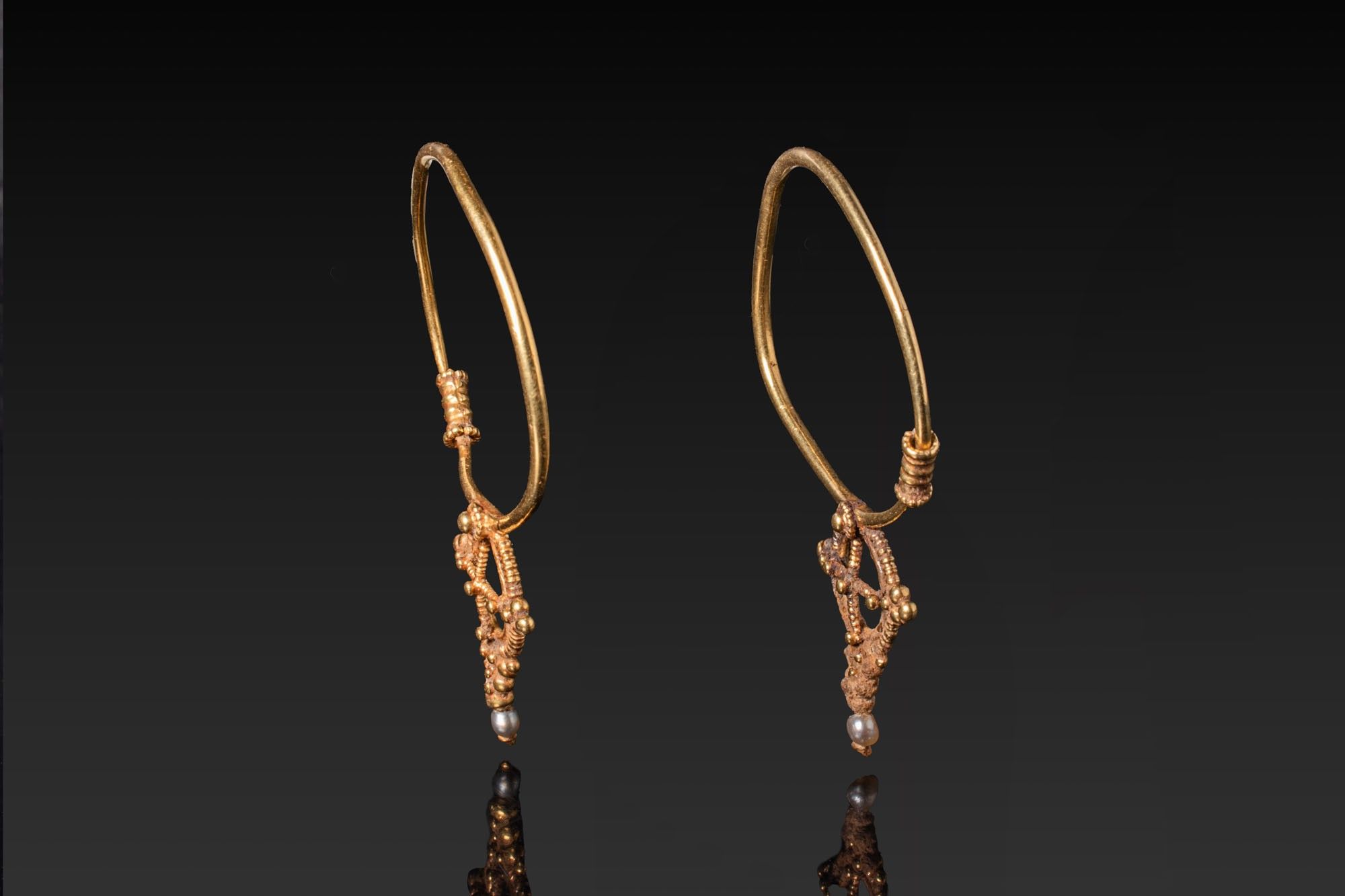 Premium MATCHED PAIR OF BYZANTINE GOLD AND PEARL EARRINGS. Ca. AD 60…