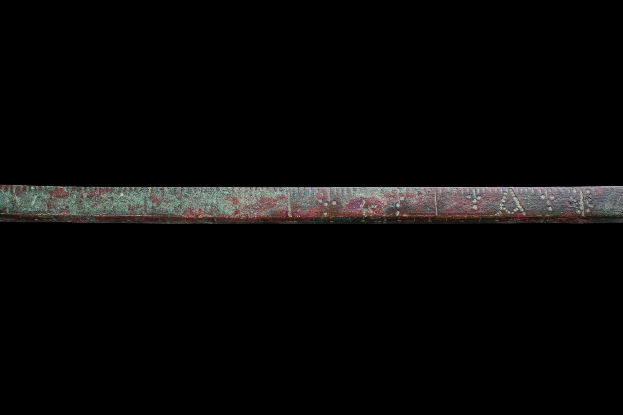 BYZANTINE BRONZE SCALE WITH INSCRIPTION. Ca. AD 500. A bronz…