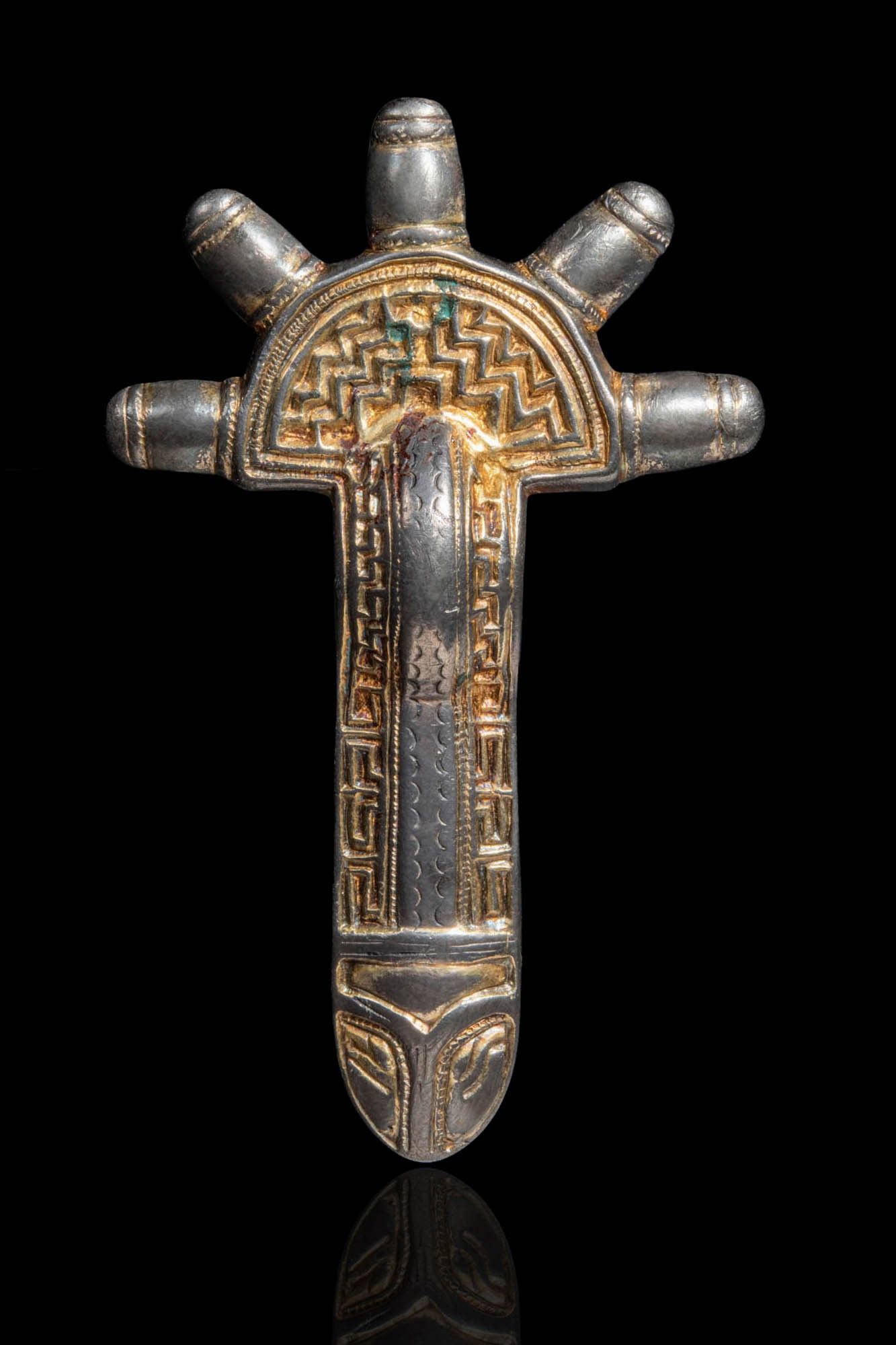 MEROVINGIAN SILVER-GILT RADIANT BROOCH.