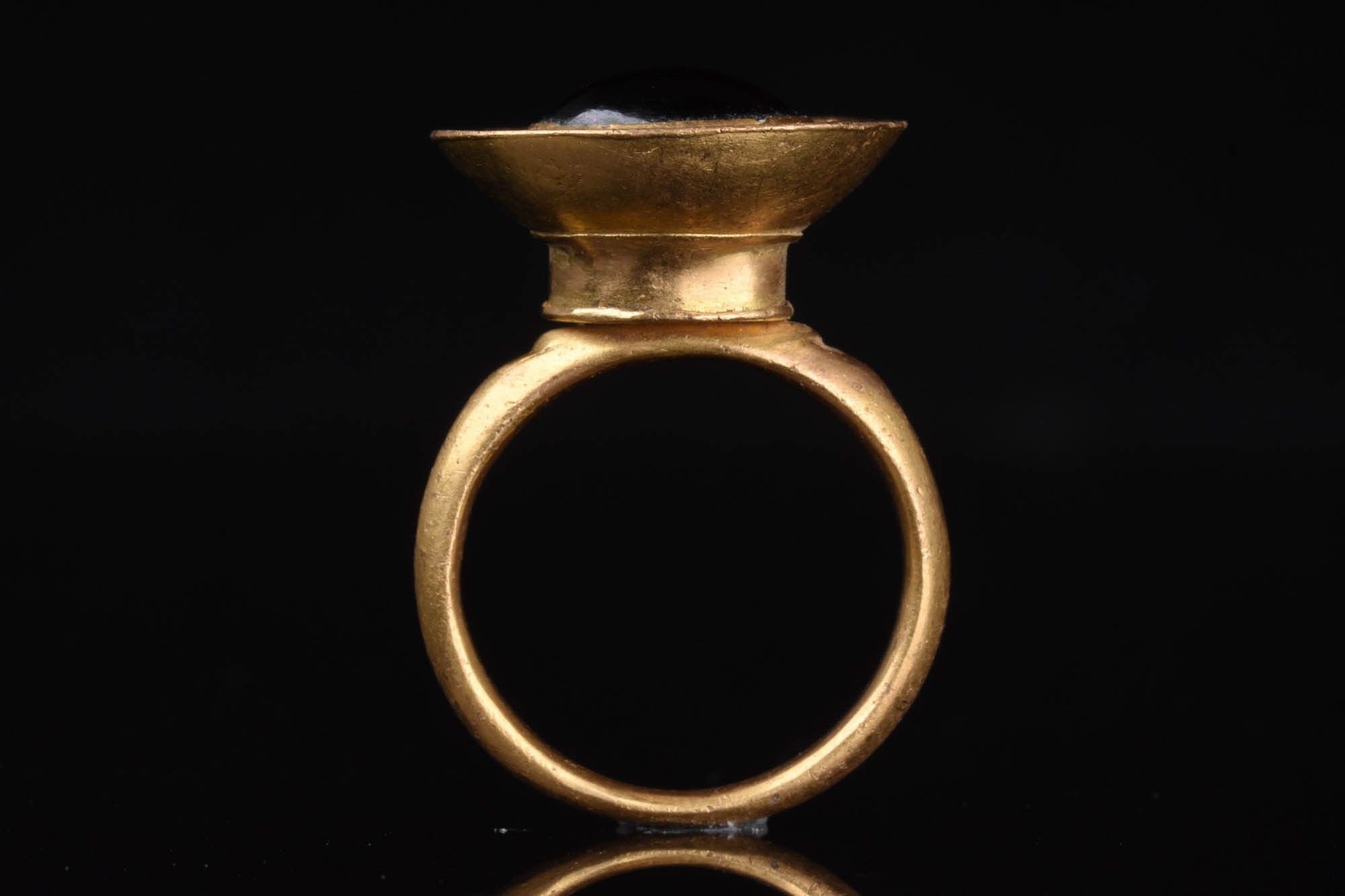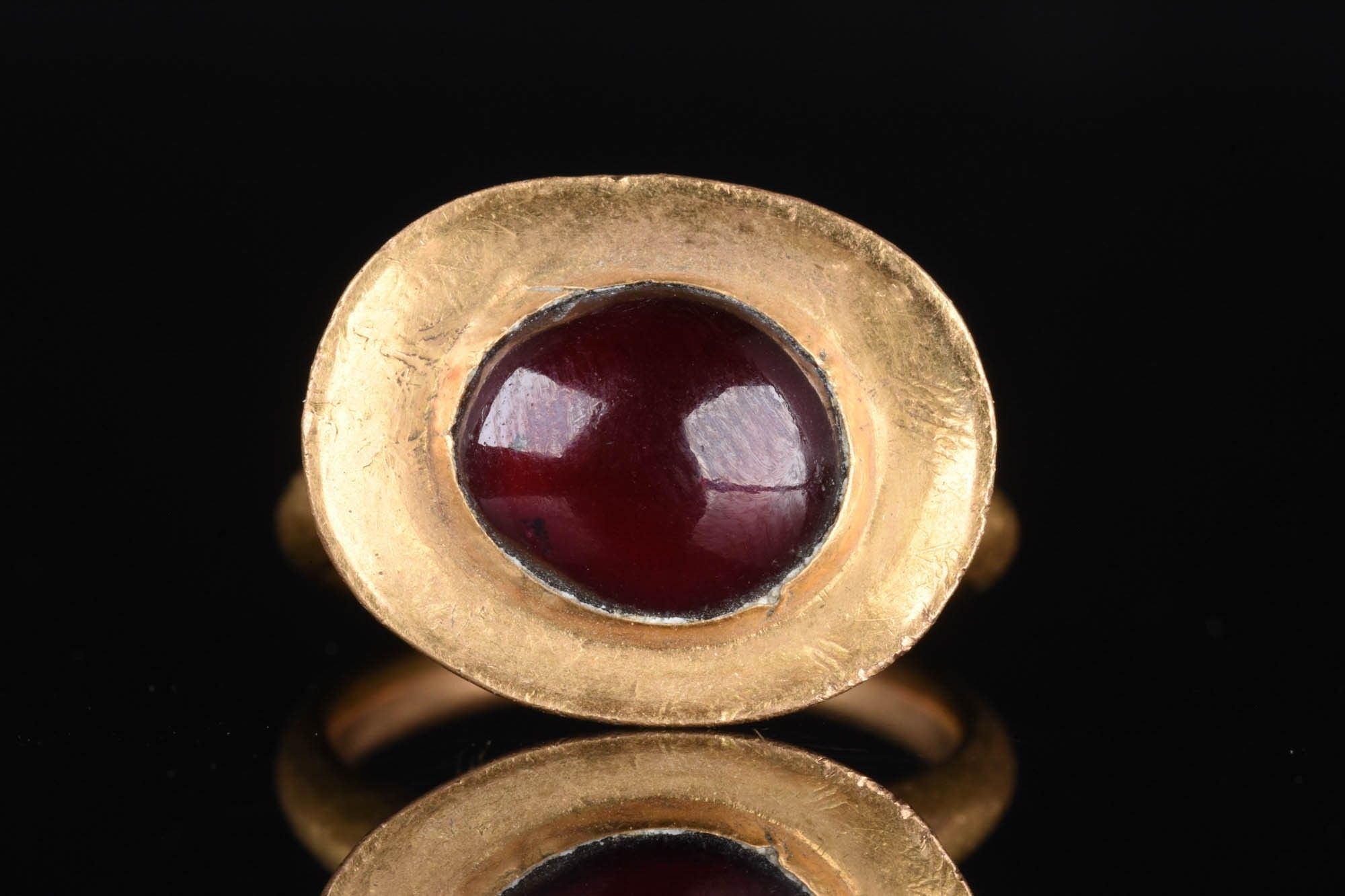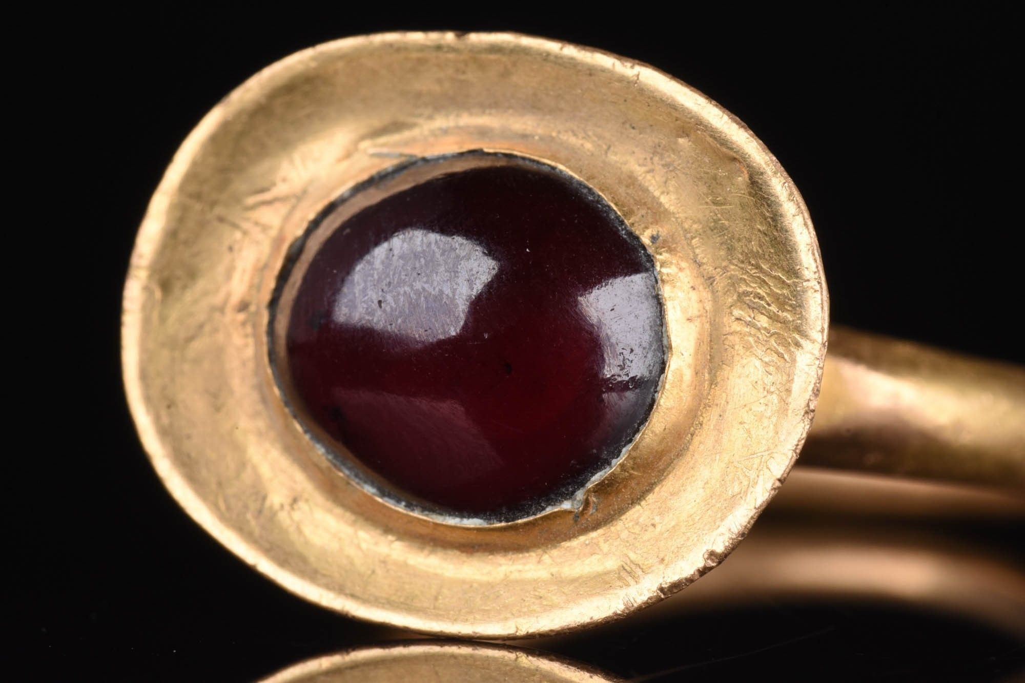 Premium MEROVINGIAN HIGH KARAT GOLD AND GARNET STONE RING. Western E…